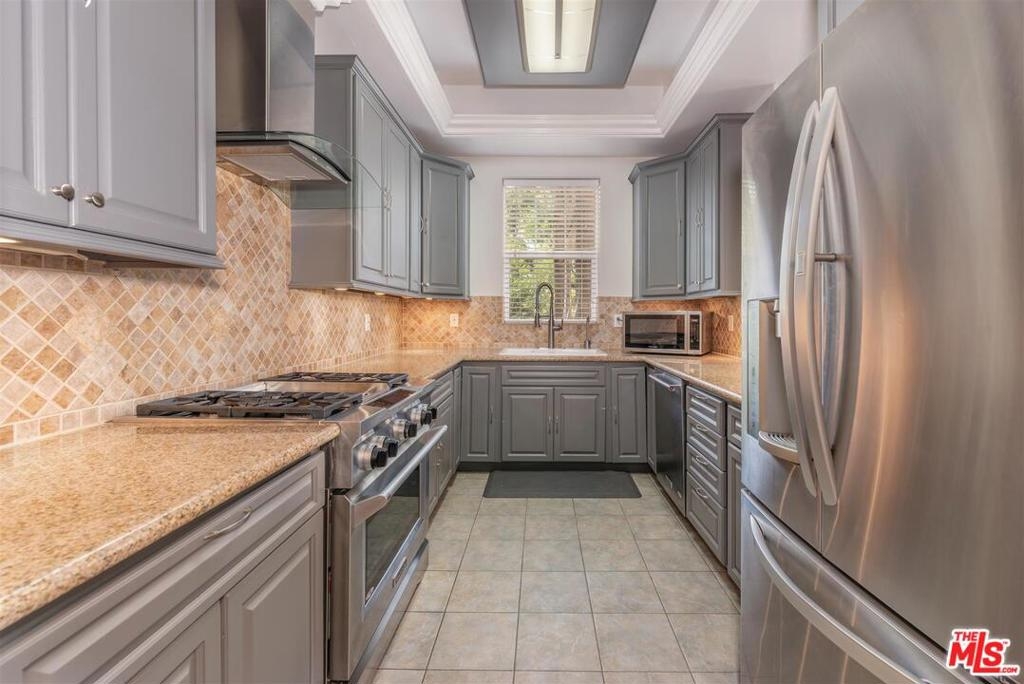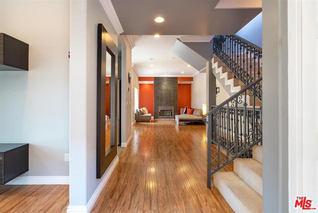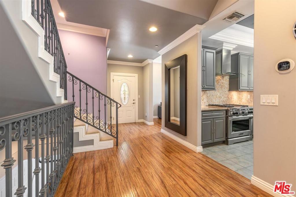 Gorgeous 3 story townhouse located in most desirable area of Burbank! The open living space with high ceilings greets you as soon as you walk-in the front door. The remodeled kitchen includes granite counters and high-end appliances. Kitchen also features considerable counter space which opens to dining area. Large enclosed patio with beautiful wrought iron railings, sliding door opens adjacent to dining area, perfect setting for outdoor enjoyment! Living room features a fireplace with custom tiled wall. All 3 bedrooms are located upstairs, including a master bedroom suite featuring vaulted ceilings, walk-in closet, private balcony and master bathroom. Secondary bedrooms enjoy mirrored closets, high ceilings and a renovated bathroom. Plus additional separate den/office located on first floor. Gorgeous craftsmanship and detailing throughout this townhome including wrought iron railings, extra wide trim, high ceilings, and gleaming wood floors. Direct entrance from a private two-car garage with full laundry room and a sizable storage closets. Walking distance from sought-out Burbank restaurants and coffee shops. Olive Recreation Center with baseball fields, tennis courts and a lovely playground is just a walk away. Beautifully maintained secured building. Low HOA's A must see!