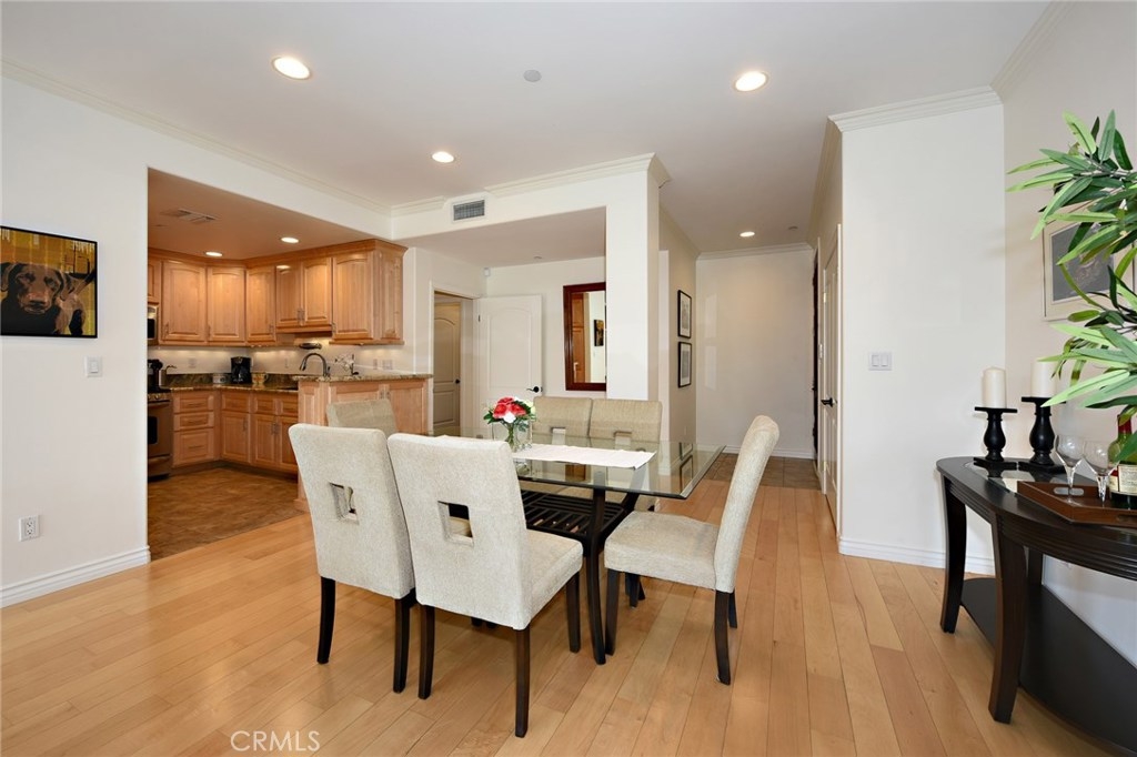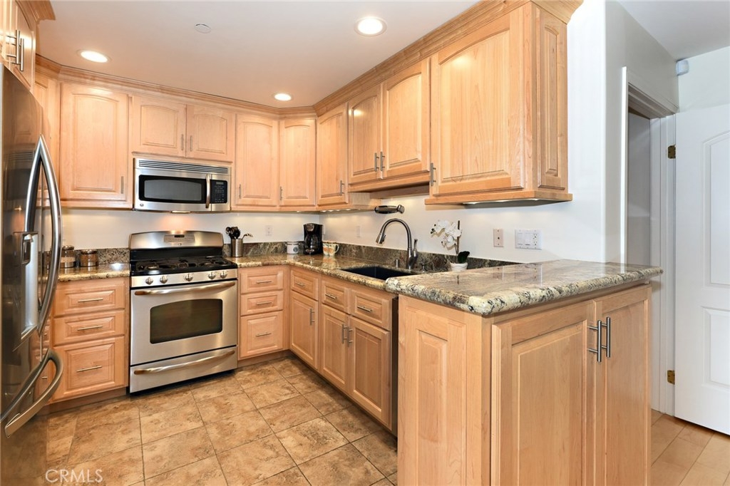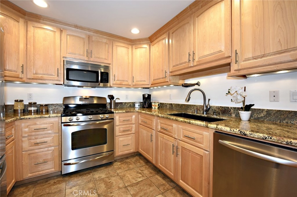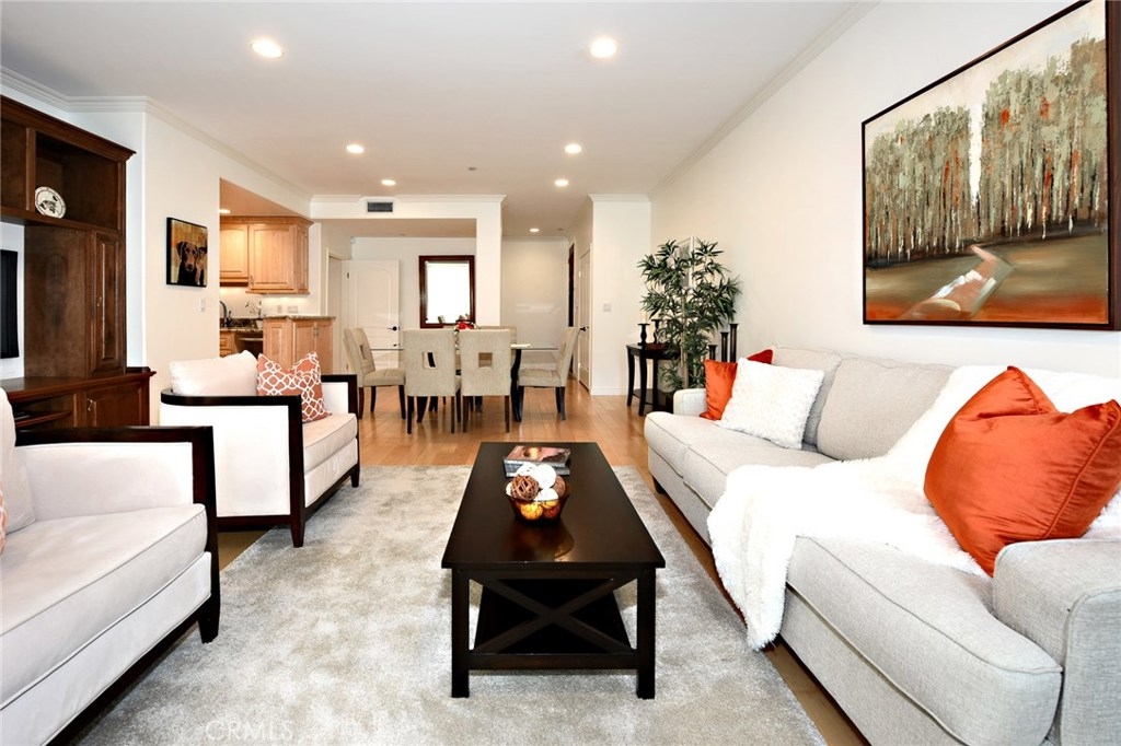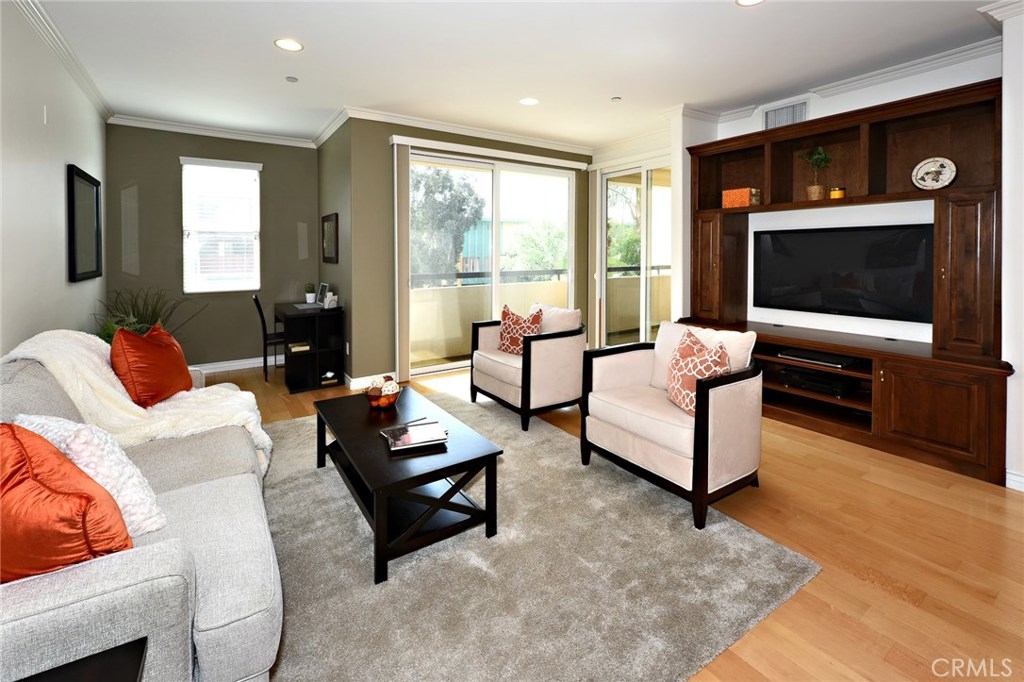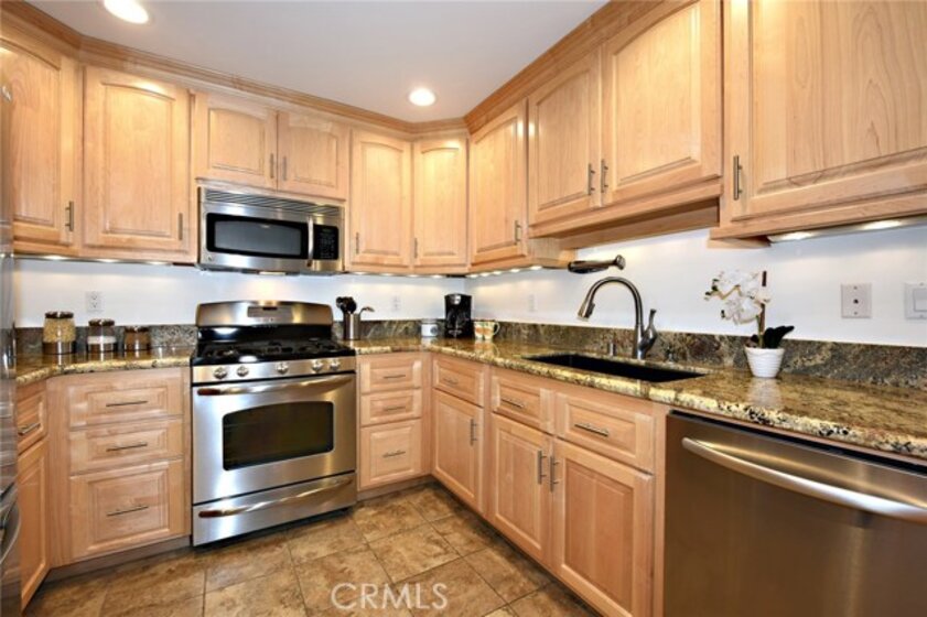 Great discovery above Glenoaks. 3BR/2BA corner unit with many custom upgrades. Beautiful, quiet building in a highly desirable neighborhood. Entry opens to a large bright living room/dining room combination with glossy wood floors. A built-in entertainment center with equipped with pull out shelves for DVD's is the focal point of the living room. The nicely redone kitchen was done with loving thought and many conveniences, offering granite counter tops, stainless appliances, custom cabinets and a pantry with pull out shelving and self closing doors. The spacious master bedroom has it's own balcony for relaxing, a large walk-in closet with built-in towers of drawers and shelves and beautifully updated master bath with dual sinks. The two additional bedrooms, one of which also has it's own private balcony, have a 2nd updated bath, The home has 3 storage closets as well as extra storage in the subterranean garage which has 2 reserved spaces with elevator access to your main floor unit. Condominium living at it's finest!.
