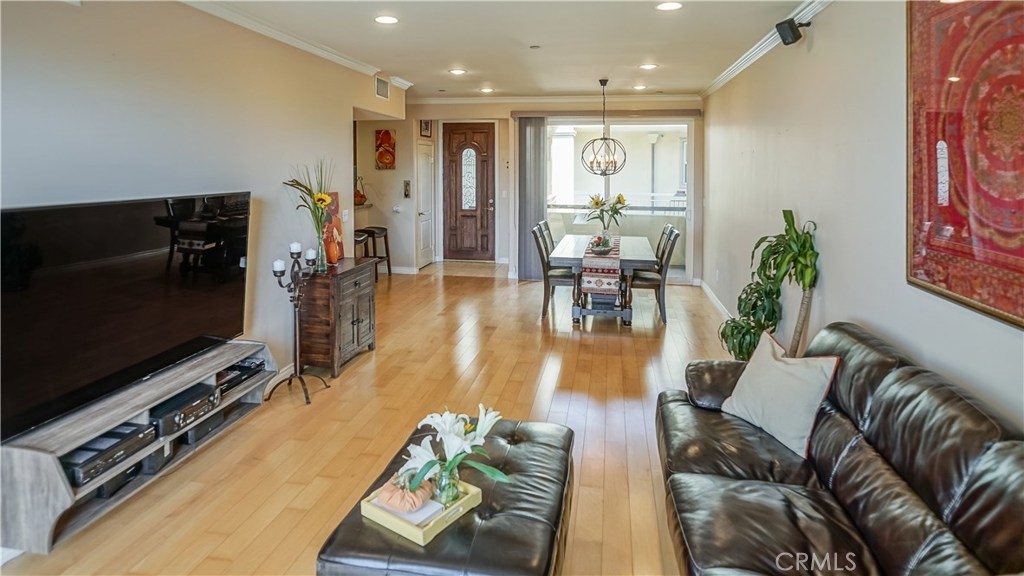 Top floor Luxury 2 bedroom, 2 bath Condo with 1,230 Sq. Ft. includes sweeping views of the mountains and the city just steps to downtown Burbank with shopping, dining and entertainment! An elevator takes you to a bamboo lined walkway to your front door. Upon entrance you will be greeted with natural light from east to west, wood floors, dual pane sliding glass doors, open floor plan, and balconies’ off the spacious dining room and family room. From the dining room you will enter the upgraded kitchen with high end appliances, reverse osmosis system and granite counter tops. As you head towards the bedrooms there is a remodeled bathroom along with private high end washer and dryer. As you enter the master bedroom you are greeted with sweeping views of the mountains off your 3rd private balcony with an additional storage closet. Also large dual closets and a large master bathroom with dual sinks complete the master suite area. The community offers a private elevator at street level for easy Handicap access, a private parking garage with 2 parking spaces, and a private phone intercom system for when guests come to visit. Also included is the Frig, Washer and Dryer. Come and see this amazing Condo that you will call home!!