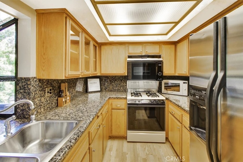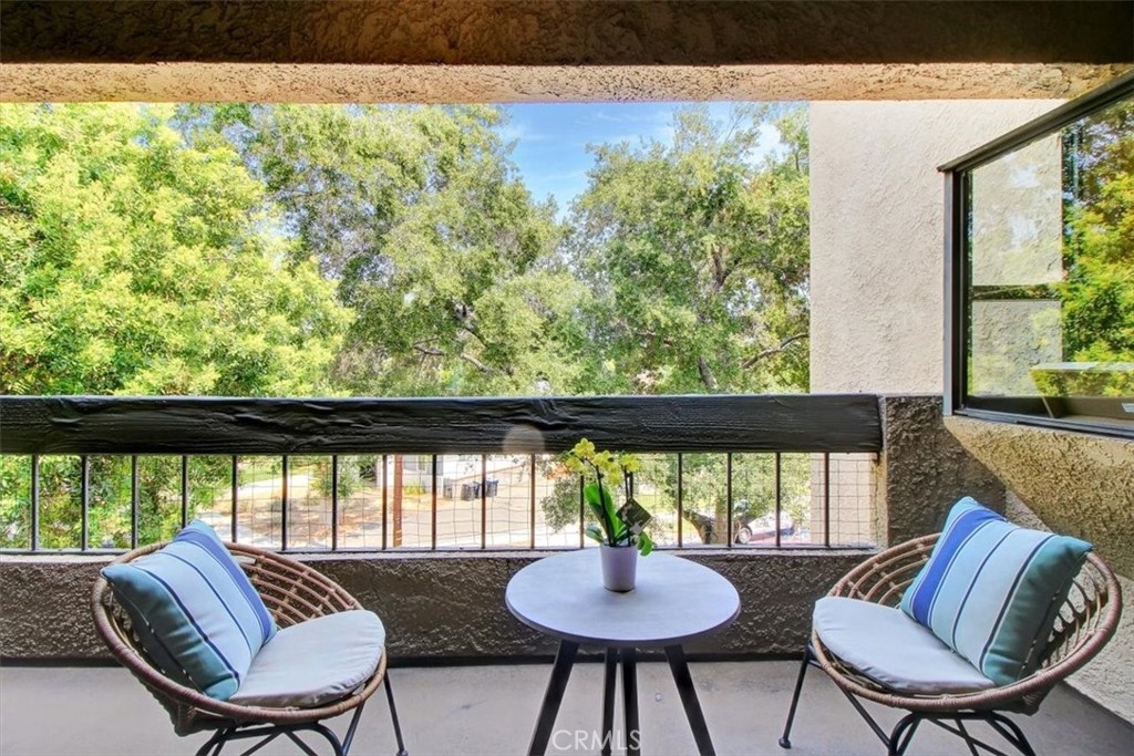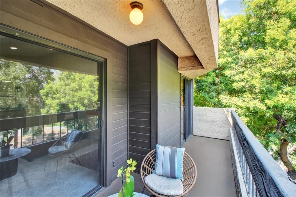 This desirable Top Floor Corner Unit condominium is located Above Glenoaks! This 3 bedroom, 2 bath home has tons of natural light with updated highlights throughout. Vaulted ceilings, recessed lighting and beautiful shutters on all the windows. The kitchen has granite counter tops, stainless steel dishwasher and refrigerator and a garden window that looks out over your large private balcony. The brick, corner fireplace is the focal point in the living room with adjacent sliding doors that lead out to the balcony, covered by a canopy of tree tops. The large master bedroom has a walk-in closet, double vanity and access to the balcony. The second guest bedroom is on the opposite wing of the home which gives optimal privacy. Separate laundry room that holds a large size washer and dryer with storage above. Brand new HVAC system was installed in 2020! Newer roof, walkway and elevator were done by the HOA as well. HOA includes Earthquake Insurance, Water and Trash. 2 assigned parking spaces which are conveniently Side by Side. Property is a block away from Subway, Starbucks and a local park. Put your offers in just in time to take advantage of the highly sought-after Burbank School District!