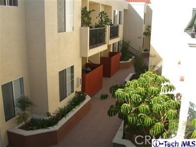 Second floor (top floor) unit with open kitchen design. Cherry laminate flooring thru out, including in both bedrooms. Both bedrooms have pitched ceilings. New tile flooring in both bathrooms. Unit has a patio facing the open-air courtyard, and another balcony off of one of the bedrooms. Wash area and linen closet in the hallway. This unit shows bigger than 952 sq.ft. due to the open floor plan. Building is mediterranean with open courtyard and AAA curb appeal. Unit comes with 2 parking spaces in the garage, and also comes with a storage locker with about 103 cubic feet of storage space.