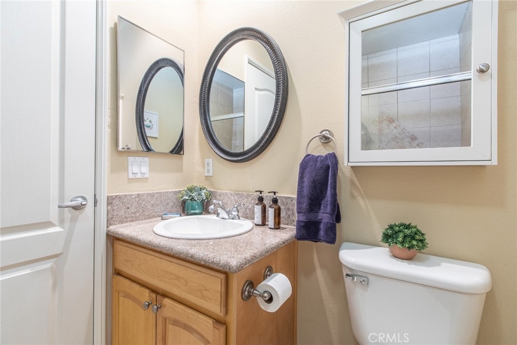 This townhouse style condo has much to offer any buyer. Upon entering you will see the open concept floor plan with a generously sized kitchen that has stainless appliances, double oven, and granite counters. The main level also has a dining area with beautiful light fixture, half bathroom and living area with fireplace, coat closet, under the stair storage and access to one of 3 balconies. The upper level has 2 bedroom suites and laundry. The main suite has vaulted ceiling, private balcony, walk in closet with storage access above, ensuite with separate jetted tub and shower, dual sinks and granite counters. The second bedroom has a full ensuite, private balcony and large closet. Shutters, Laminate and Engineered hardwood floors throughout most of the home. Central heat and air. 2 assigned parking spaces with storage.