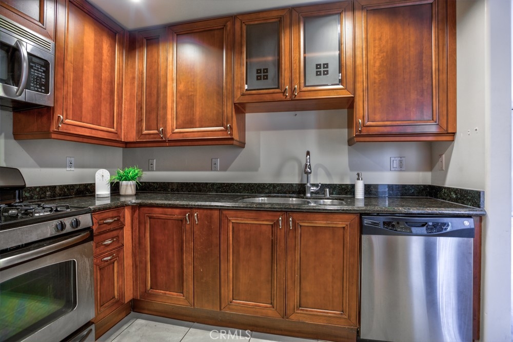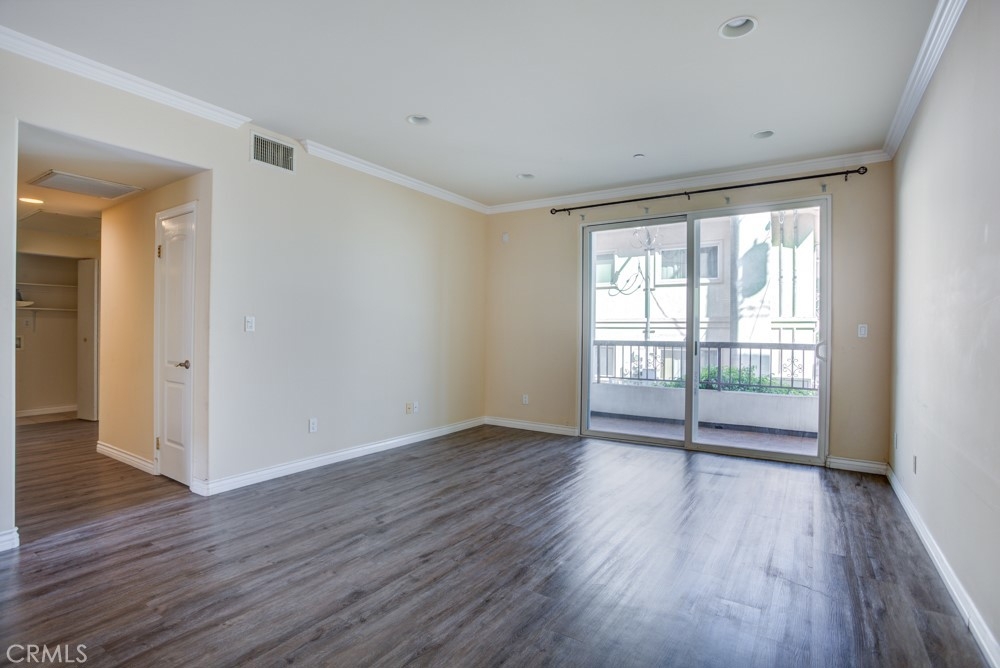 What a location! This first-floor condo is in a sought-after area of Burbank, so you can walk to all the shopping & dining along San Fernando Blvd. The home is in fantastic condition and since it’s on the first floor -- you’ll never have to climb stairs again! There’s even an elevator to get to your 2 underground parking spots and the secured storage room. Unit 105 is just around the corner from the building’s front gate, and you are welcomed by a lush garden in the sunny courtyard directly in front of your door. Step inside to find laminate floors, high ceilings, crown molding and recessed lighting. The spacious living room includes a slider out to a private covered balcony. Just off the living room, your kitchen features granite countertops, stainless steel appliances and cherry wood cabinetry. Down the hall, the primary suite has two closets and an attached bathroom with a walk-in shower. The guest room includes a clothes closet as well as a linen closet, while the laundry area also has lots of storage space. The building’s gym is just across the courtyard. This great Burbank address is zoned to top-tier schools, and you’ll be able to walk downtown for dinner, drinks or to go see a movie. This condo won’t last -- call for a tour today.