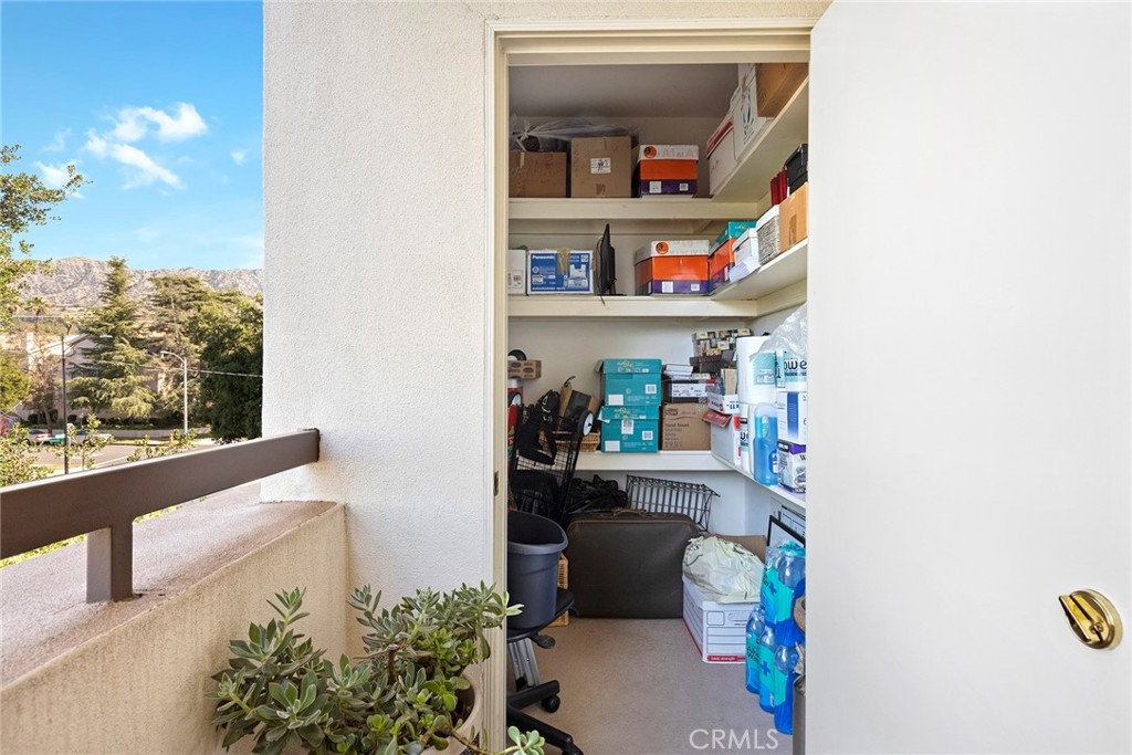 Perched up near Foothills of Burbank. Welcome home to this captivating top floor condo in a uniquely designed building. Open the door and be embraced with abundant light entering from all angles. The spacious open living and dining area with high ceilings, crown molding and recess lighting is perfect for your entertainment and or live and work from home with no one above you. The perfectly sized Kitchen has lots of cabinets, deep countertops, and a picturesque window. The spacious bedroom offers ample light, two room-niches to fit in your furniture, and a large closet with sliding mirrored door. The oversized bathroom has dual-sink and a towel closet. Step out to the balcony where you can enjoy your morning coffee, with scenic view of the mountains and watch the afternoon sunset. Other features include a conveniently located large storage inside the unit, ample cabinet space, washer and dryer area. Two parking spaces, trash-shoot, security building, intercom system, and cameras. Well maintained complex with a small gym and low HOA fees. Minutes from, Burbank World Media Center, entertainment, movie theaters, dining and shopping, Disney, NBC, Universal, Warner Bros. Located within Burbank School district.
