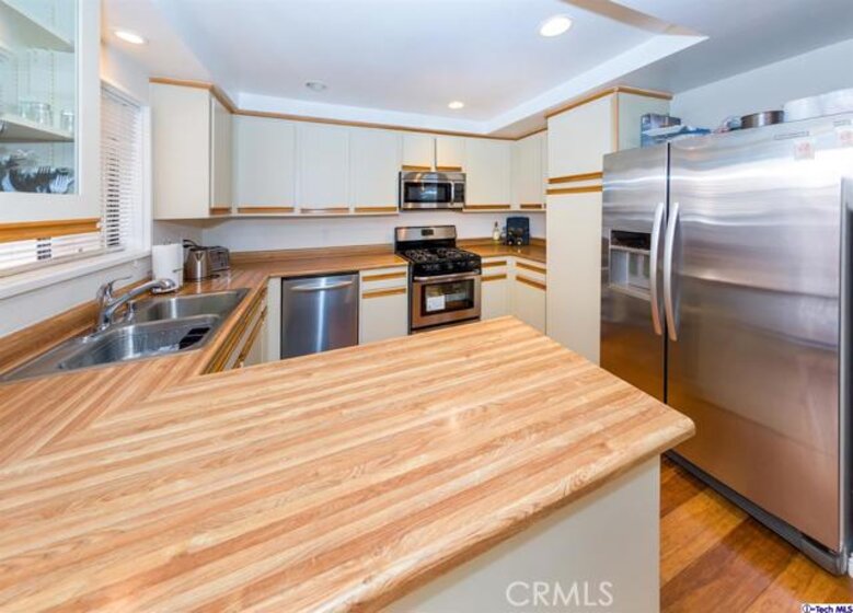 Beautiful condo in the heart of Downtown Burbank. This unit features 2 Bedrooms, 2 Bathrooms, 1,231 sq. ft. on one story and low HOA. Large and Bright Living/Dining rooms, Gas fireplace, Master Suite, Kitchen with stainless steel appliances, hardwood flooring, recessed lighting, both bedrooms are large with wall to wall closet, recessed lighting, ex-large patio great for entertaining, Newer HVAC, 2 side by side parking with 4 storage areas and close proximity to shopping, dining and movies.