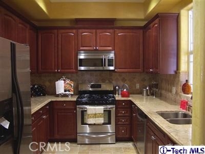 15 Luxurious Brand New Tuscan style Condos. Featuring: Travertine and wood floors, kitchen with stainless steel appliances, granite counter top and cherry or maple wood cabinets, laundry hookup in unit. This particular unit with 3 bedrooms & 2 baths has only one wall sharing and is a front corner with balcony from living room facing Palm with view of the city and mountains. Refrigerator is included.