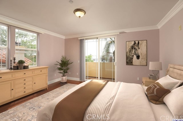Only 15 Luxurious Tuscan style Condos in this complex, located in prime area in Burbank. This stunning front corner unit shares only one wall and is move in ready! Beautifully appointed, this very spacious 3 bedroom, 2 full bathroom unit features large comfortable rooms with high ceilings, crown and base moulding throughout, wood, travertine and laminate floors. Stainless appliances, beautiful Maple wood cabinetry and granite counters in the kitchen. Large front balcony off the living room and a full walk in closet in the master bedroom. Stackable washer/dryer in unit included. Beautiful designer colors throughout. Some rooms have been virtually staged. This unit is turnkey!