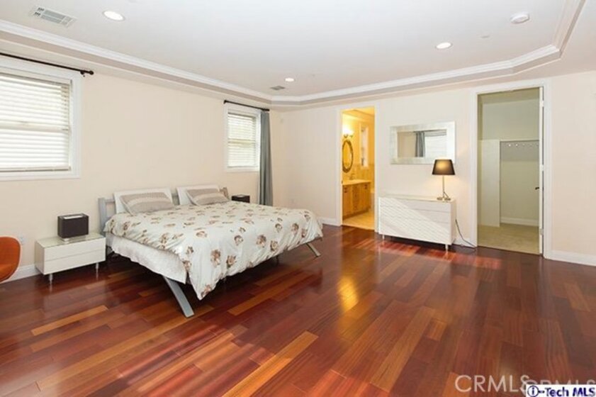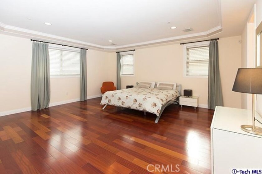 Absolutely beautiful and private Townhouse offering charm and character for today's demanding Executive life style. Abundance of space, class and master design and workmanship are evident throughout. Elements of traditional French Chateaus combined with modern necessities complete this one of a kind residence. Located in Burbank, the heart of what is fast becoming the entertainment capital of the world, with close proximity to all major Studios. Built in 2014, this lovely unit is equipped with latest available technological gadgetry; prewired for cable and security, cameras, speakers as well as secure controlled entry. Very convenient and attractive floor plan featuring four large bedrooms and 2.5 bathrooms. Sizable windows all around keep the interior very light and bright. Brazilian chery hard-wood floors enhance the charm and warmth. Expansive patio and a roof-top deck with views stretching from nearby Verdugo Mountains to downtown LA and Griffith Park are great for outdoor enjoyment. Extra wide two car attached garage offers direct access. Laundry conveniently located on the second floor. Extra wide attic space is great for storage and can be easily converted to an office or a studio. Don't miss this one of a kind offering.