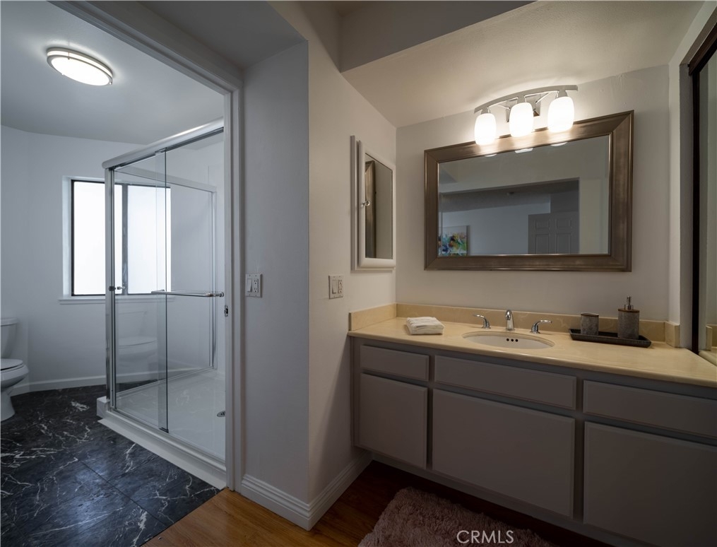 Must see, beautiful, light and bright 2 bedroom 2 ½ bath condo in the heart of Burbank on a lovely tree-lined street! Small boutique building with only 20 units, low HOA dues, includes earthquake insurance! Kitchen includes range, dishwasher, microwave, granite counters and counter seating. Open floorplan with a formal dining area, a step-down living room, gas fireplace, large windows, private patio plus a powder room on the main floor for your guests. Upstairs; Large master suite with dual closets, newly remodeled master shower and a spacious second bedroom with en-suite bathroom, laundry closet with stackable washer & dryer included, plus hallway built-ins for extra storage. Unit has been freshly Painted throughout. Large, side-by-side parking in a secure underground lot, storage above spaces, gated, secure access to building, smart home thermostat. Other features include, upgraded electrical panel, some plumbing and use of the gated courtyard common area just outside your front door.