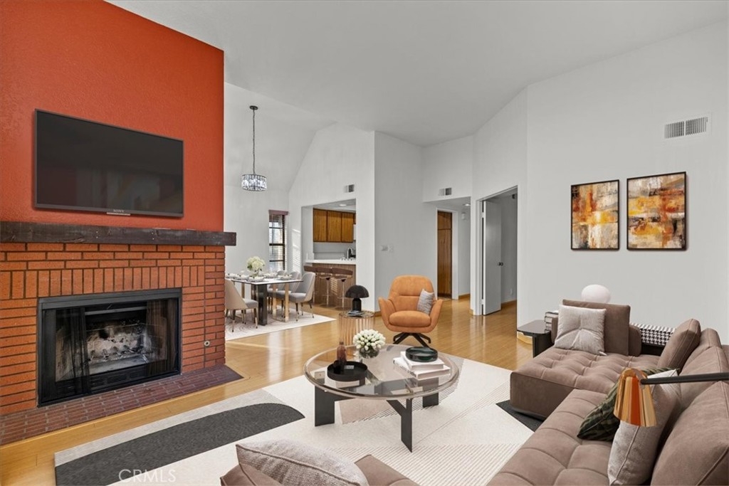 Well maintained penthouse level Bethany Woods North condominium with open floorplan, plenty of natural light and spectacular city views. Upgrades include new water heater, new lighting kitchen and bathrooms, new forced air, fresh interior paint and new exterior door. This spacious stand alone end unit features an inviting family room with cozy fireplace, high ceilings and formal dining area balcony access. Full laundry included discreetly off the hallway with extra storage. Large primary suite with ample closet space and ensuite bathroom with dual sinks. HOA offers open courtyard with picnic area and ADA access hot tub. Gated subterranean parking includes 2 spaces with exterior storage locker. Walking distance to transit, shopping, restaurants, Burbank High School, McCambridge Park/Burbank Tennis Center adjacent, and proximity to Downtown Burbank and major studios, including Disney and Warner Bros.
