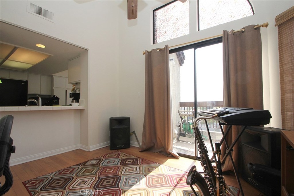 This penthouse condo is in a highly desirable Burbank neighborhood. Newly painted. Spacious 1455 sq.ft. Formal living room with fireplace. Dining area with direct access to a private balcony. Ample storage/cabinet space in the kitchen with breakfast nook and tile counters in the kitchen. Den with built-in shelf/cabinet and a wet bar. Master bedroom with a large walk-in closet. Bedrooms both have direct access to a balcony with tree top view. This condo also features high ceilings and a laundry area inside the unit. Community amenities such as a pool, two spas and club house and 2 parking spaces/storage area. Minutes within restaurants grocery stores, Wildwood Canyon Park and the Empire Center!
