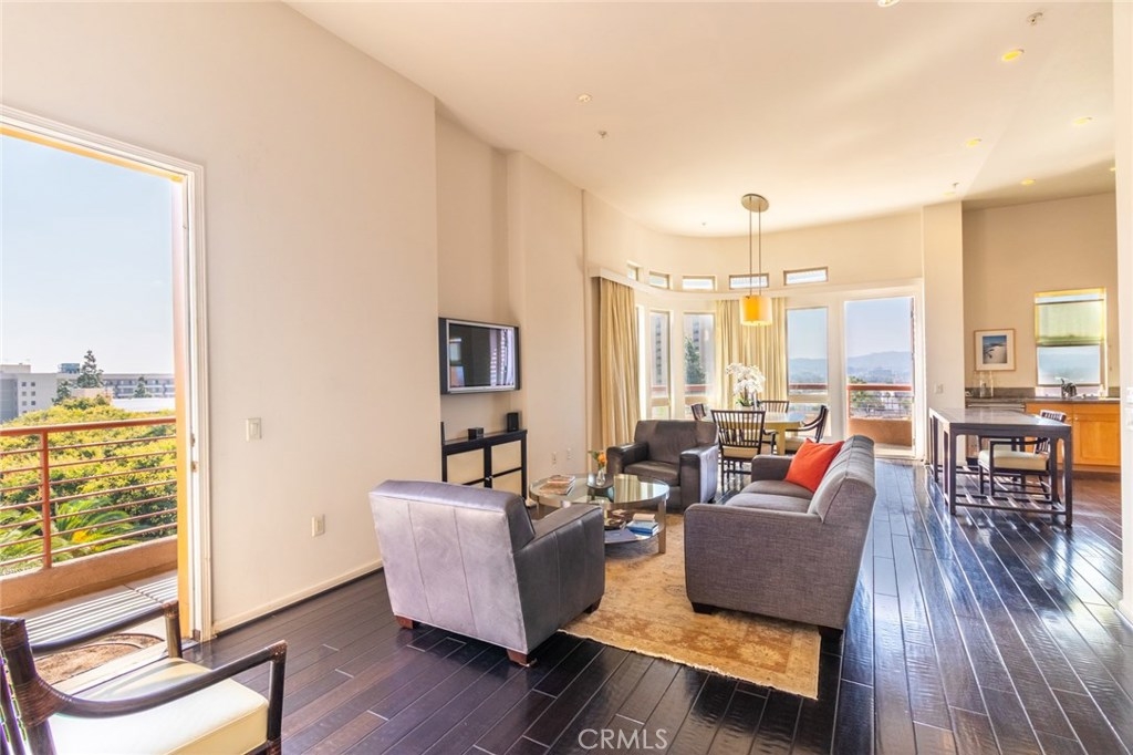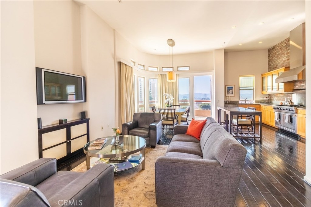 Welcome to Burbank's finest one of a kind Condominium in a premium complex. This stellar unit is located on the top floor with high ceilings and a 270-degree view of Downtown Burbank, the Burbank Hills and the San Fernando Valley is move in ready. This home features exquisite upgrades from a custom kitchen with Viking appliances, hardwood like flooring, shoji screens, custom closet and much more. There are two ample size bedrooms with the main bedroom having an on-suite bath and walk-in closet. The second bedroom is isolated on the other side of the unit with bath just off the bedroom. The open floor plan is bathed in a ton of light, a large wrap around balcony with stunning views and a secure building makes it a perfect place for the most discerning buyer. This unit has a large private storage facility near its excellently located side by side parking. The HOA amenities includes a beautiful swimming pool, BBQ area, outdoor seating to relax and a recently remodeled fitness center. The home is available with furnishings if the buyer desires. Located in the heart of downtown Burbank with easy access to all Downtown Burbank has to offer. Don’t miss out on this once in a lifetime opportunity.