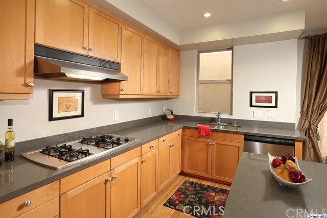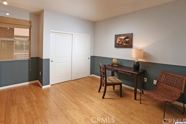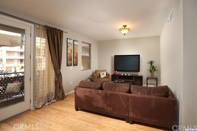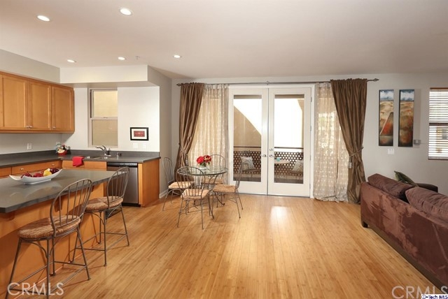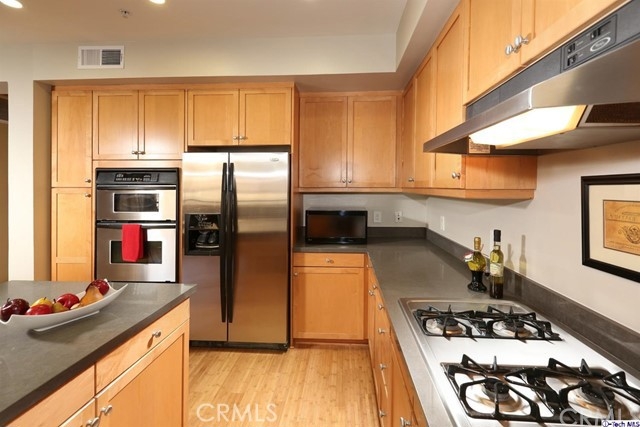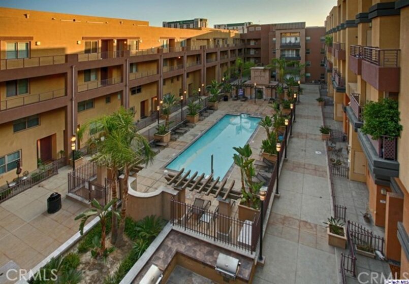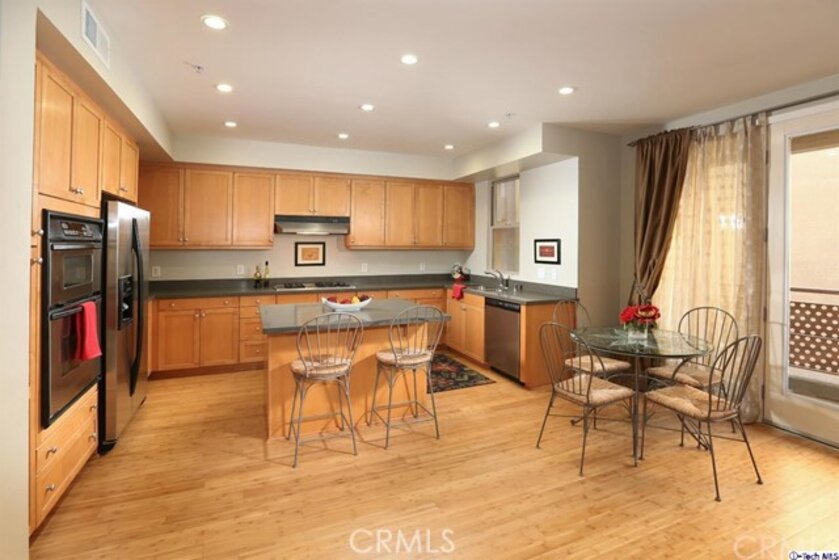 This gorgeous unit, is located close to fabulous Downtown Burbank, boasts 2 bedrooms, each with ensuite bathrooms, brand new wood Bamboo floors throughout, a remodeled kitchen with new granite counters and new dishwasher and fresh paint in the kitchen and living rm. Great open floorplan, light and bright, outdoor community areas include pool, workout room, outdoor patio with grill. You will love this beautiful unit in one of the most sought after complexes in the area!
