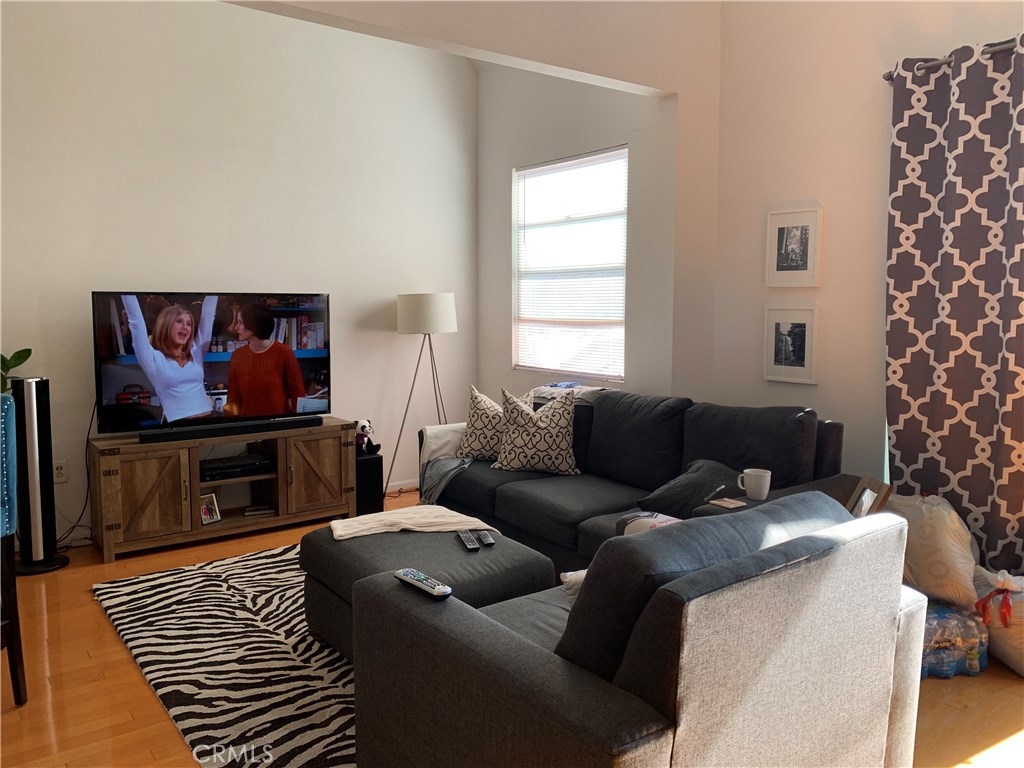 Modern condo penthouse at prestigious sought after Burbank Village Walk. 1 Bedroom + LOFT & 2 BATHS. This lovely unit includes: formal entry way, hardwood floors. Gourmet Kitchen with granite countertops, lots of cabinets and breakfast bar. built-in appliances, a unique open ceiling & a pass-through window into the living room. Open concept living room with soaring cathedral ceiling and front patio perfect for those cool evenings with amazing city views. Upstairs loft looking over living room - Can double as a guest bedroom or a great home office! Sundeck with stunning views of mountains, a charming space for entertaining. This truly is a one of a kind home! This unit facing the Angeleno side of the complex and highly desirable & it's an end-unit! You'll surely appreciate the wonderful natural light pouring in throughout the day. Plush carpeted Master bedroom features walk-in closet. Additionally, this home features a convenient laundry in closet for a stackable washer/dryer unit. Part of an HOA, the building has a community pool, spa, fitness center, grand outdoor terrace fireplace, BBQ(s), The resort style complex offers two secure gated side by side parking spots, ample guest parking. Best Downtown Burbank location! Close to restaurants, shopping, movie theaters and more!Minutes from 5 FWY, Disney, Universal and Warner Brother Studios.