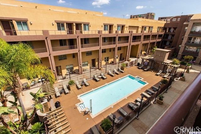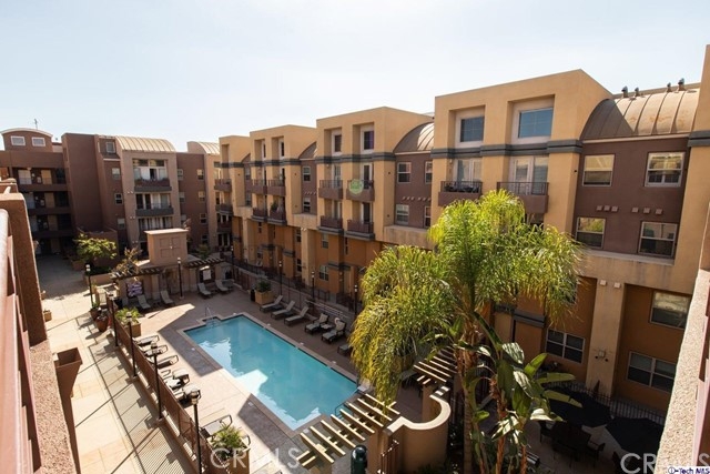 Downtown Burbank living at its best! In the sought-after Burbank Village, a light filled 1,450-SqFt, 1-bedroom, single loft, 2-bathroom condo with lovely views of the complex welcomes you home! A warm tone kitchen features a tiled backsplash, built-in appliances, a unique open ceiling & a pass-through window into the living room. Down the hall, find a bright living room with high ceilings, beautiful wooden floors & access to an open front balcony with unobstructed views of the glittering community pool below. The bedroom is illuminated with natural light & is across from a bright split bathroom featuring plenty of counter space & storage. Upstairs, find a quaint loft overlooking the living room, a full bathroom & closet, plus a rooftop sundeck with some views of mountains, a charming space for entertaining. The loft makes a great guest bedroom or an open office space. Additionally, this home features a convenient laundry closet for a stackable washer/dryer unit. Part of an HOA, the building has a community pool, 2 side by side parking spaces are near the elevator, gym, BBQ & fire pit. Only minutes away from local restaurants & shops, Joaquin Miller Elementary School, Burbank High School, Burbank Town Center, IKEA, markets, and plenty more!