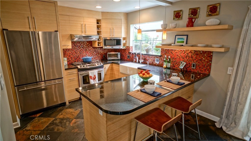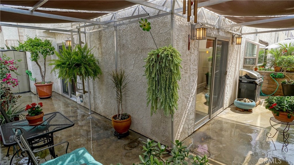 Amazing corner unit townhome located in the Burbank hillside! The open floor plan of the living, dining and kitchen areas make it an entertainers dream home! The living area boasts a gas fireplace and is the perfect place to relax. The dining area is ideal for family gatherings. The sleek kitchen includes custom bamboo cabinets, granite counter top, glass tile backsplash, farmhouse sink, stainless steel appliances, breakfast bar and an efficient pantry with custom pull-out shelving and drawers. Adjacent is the utility area and powder room. The wrap around patio with custom awning completes the downstairs. The guest bedrooms have blackout shades, ceiling fans and sliding closet doors with custom organizers. The full guest bathroom has a stylish vanity with a quartz counter top, brushed nickel fixtures, subway tile tub surround and hexagon tile flooring. The master suite includes silk drapes, blackout shade, reading sconces, ceiling fan, cozy balcony and dressing area with custom his & her wardrobe closets. The master bathroom has a chic vanity with a quartz counter top, brushed nickel fixtures, mosaic tile shower surround and Hexagon tile flooring. Additional features include slate flooring (downstairs), wool carpeting (upstairs), fresh interior paint, recessed lighting throughout, central air & heat, newer electric panel, tankless water heater, dual-pane windows (except two) and sliding doors, refreshing community pool and subterranean parking with two parking spaces.