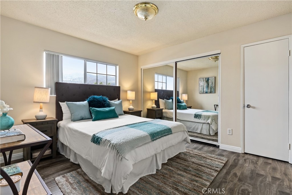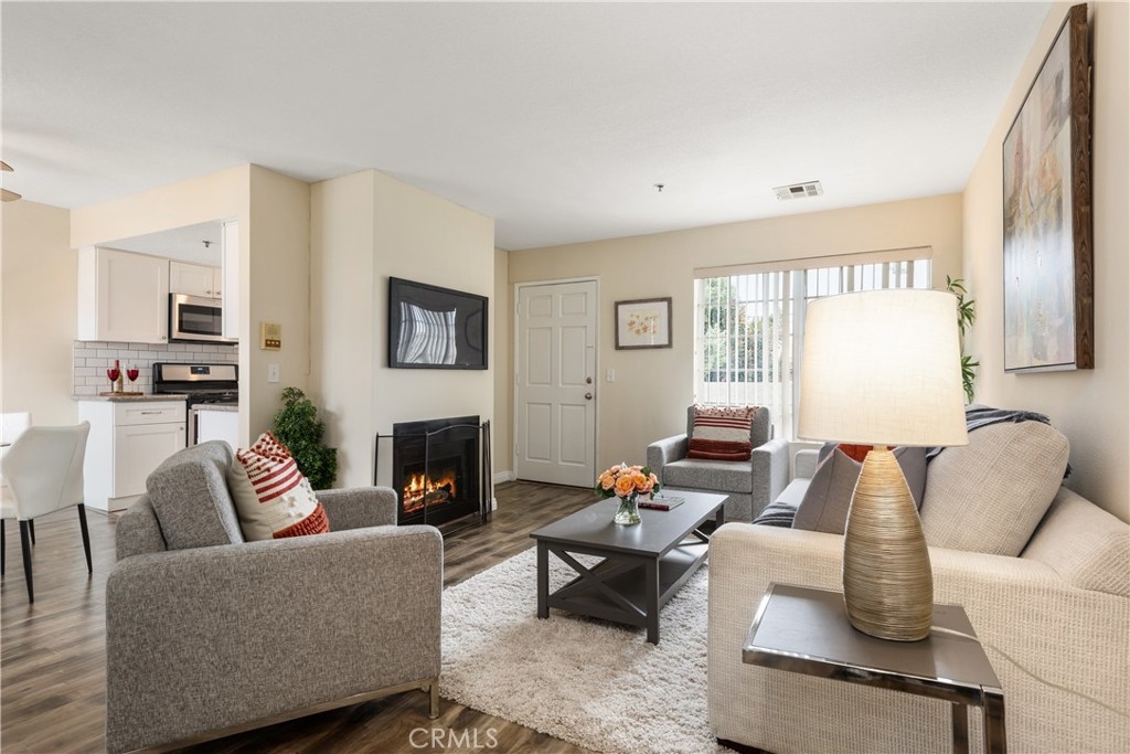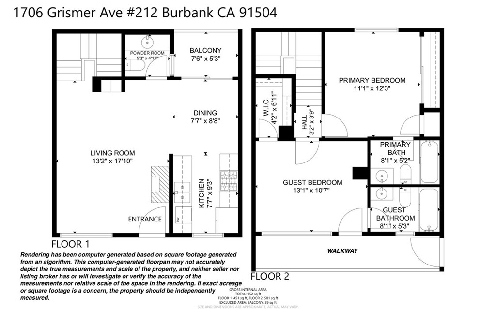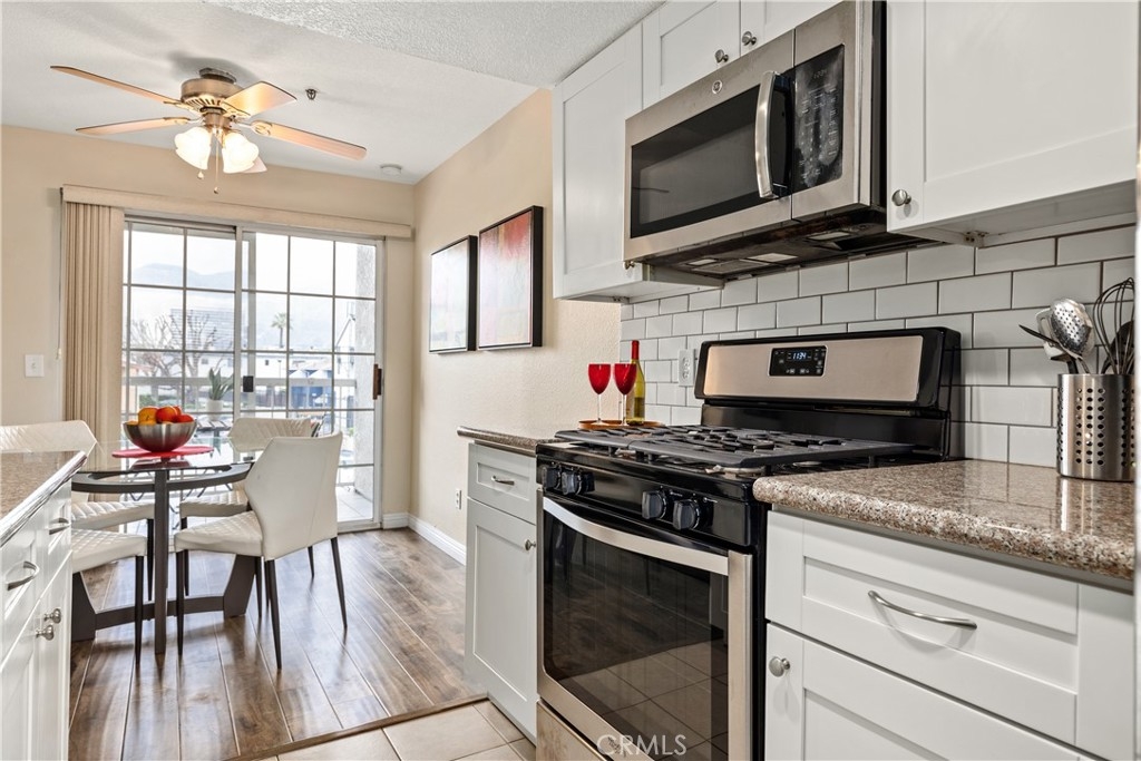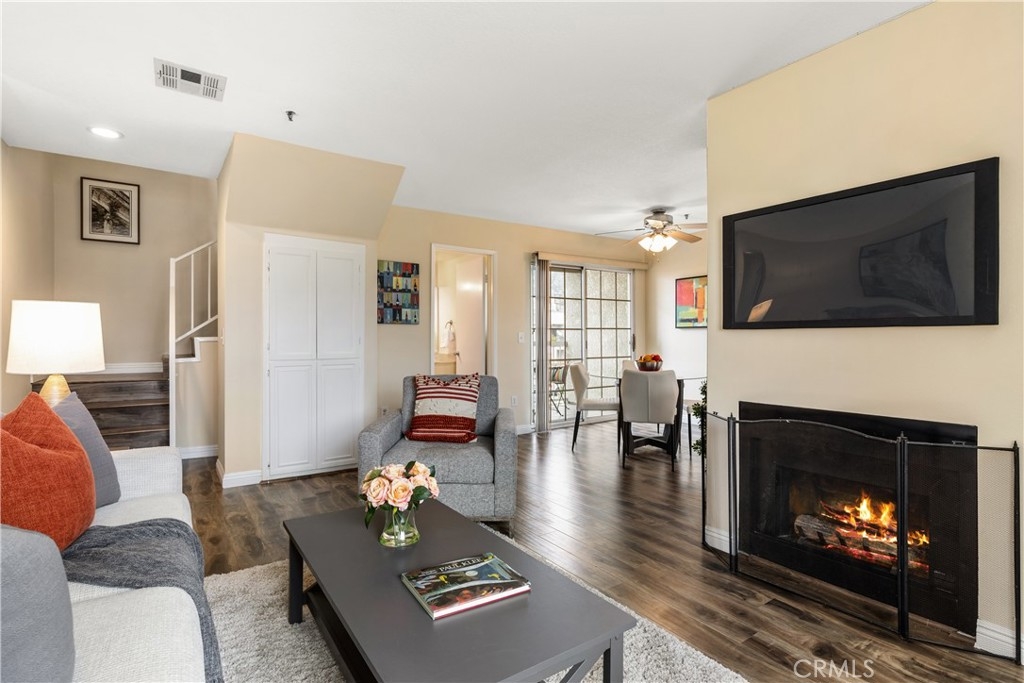 As you enter you are welcomed by an open living room lined with windows and warmed by a fireplace. Continuing on you find the dining area with a view out the sliding glass door leading to the private balcony. The newly updated kitchen comes complete with stylish subway tile backsplash, shaker style cabinets, Stainless Steel Appliances, and stone countertops. As you head upstairs on your left you are is a large bedroom with on suite bathroom and large closet. Also upstairs is a bright second bedroom with on suite bathroom and walk in closet. All of this in the desirable Burbank Hills area, with 2 non-tandem parking spots, quick access to the freeway and nearby cafes, restaurants, and the beautiful McCambridge Park.