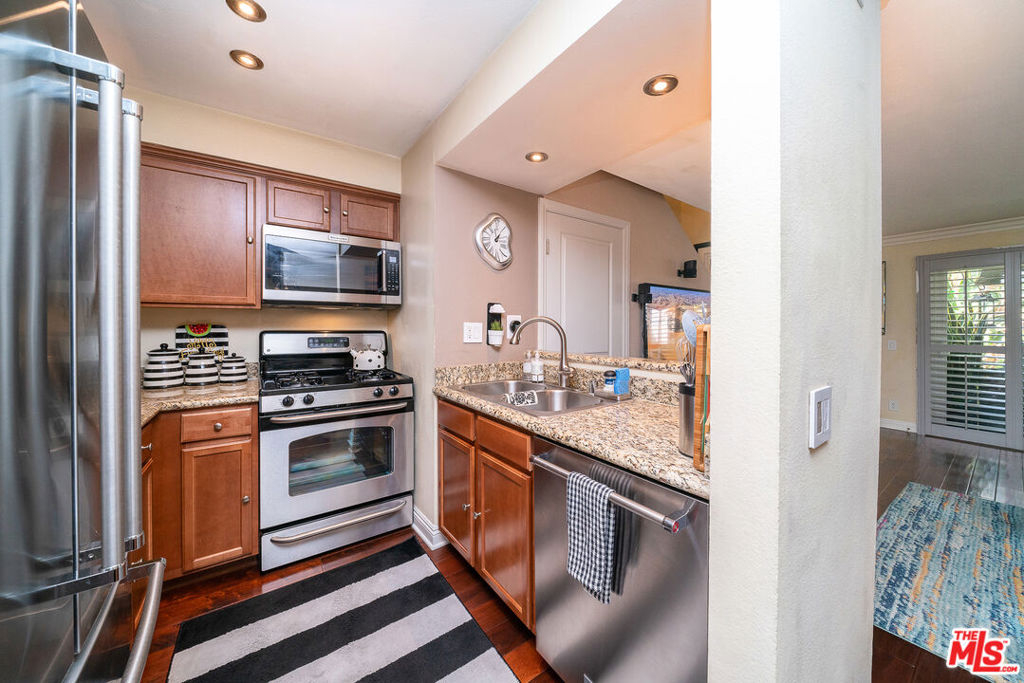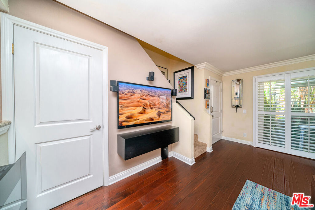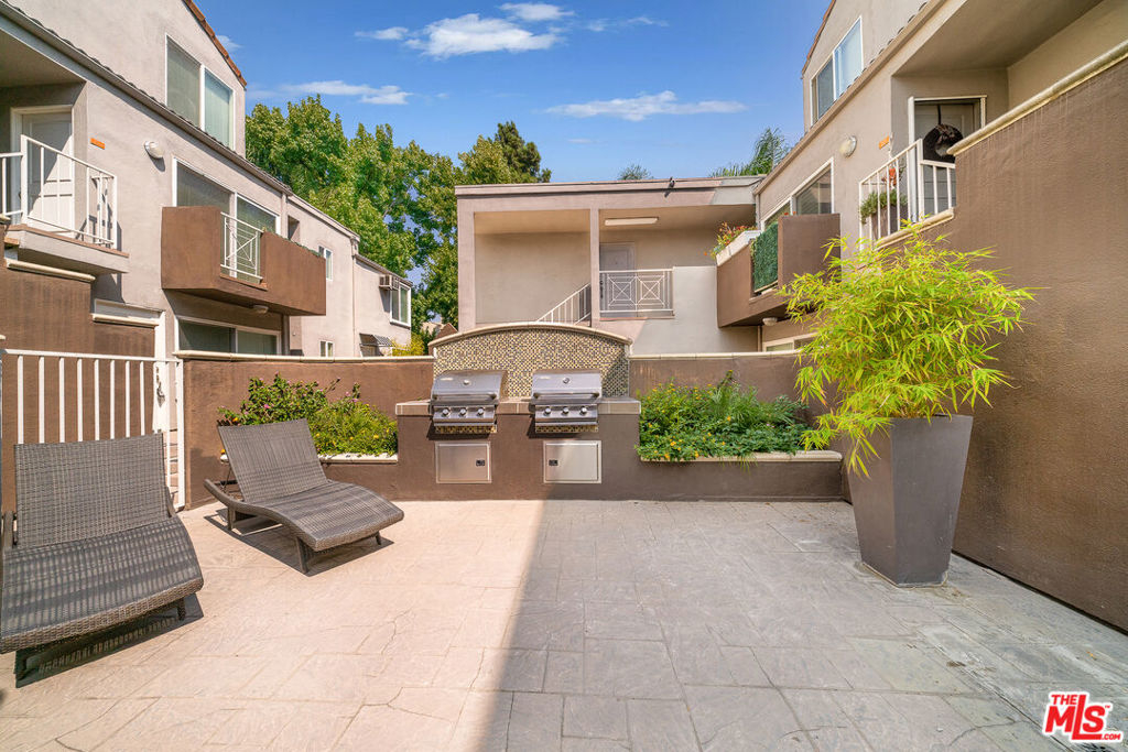 Turnkey executive smart townhome in the heart of Burbank's media district. This loft style one bedroom, one and a half bath end unit has it all. Excellent location proximal to Toluca Lake and all studios. This fully renovated unit includes hand scraped walnut wood floors, plantation shutters throughout, and crown moulding. The open floor plan features a balcony with treetop views. Kitchen amenities include upgraded stainless steel Kitchen-Aid appliances and granite countertops. Smart home features include a Nest system for thermostat and carbon monoxide detectors, Ring doorbell system and key pad entry. Bose 5.1 surround sound throughout and LED Lutron lighting system. Primary bath has a rainfall travertine spa shower with body sprays. Unit comes with a secure, deeded underground parking space with dedicated EV charger and extra storage. Entourage is a luxury gated community which includes water, trash, general maintenance, on site gym, jacuzzi and BBQs with expansive outdoor community space. A+ location with nearby access to local supermarkets, restaurants, entertainment and more!