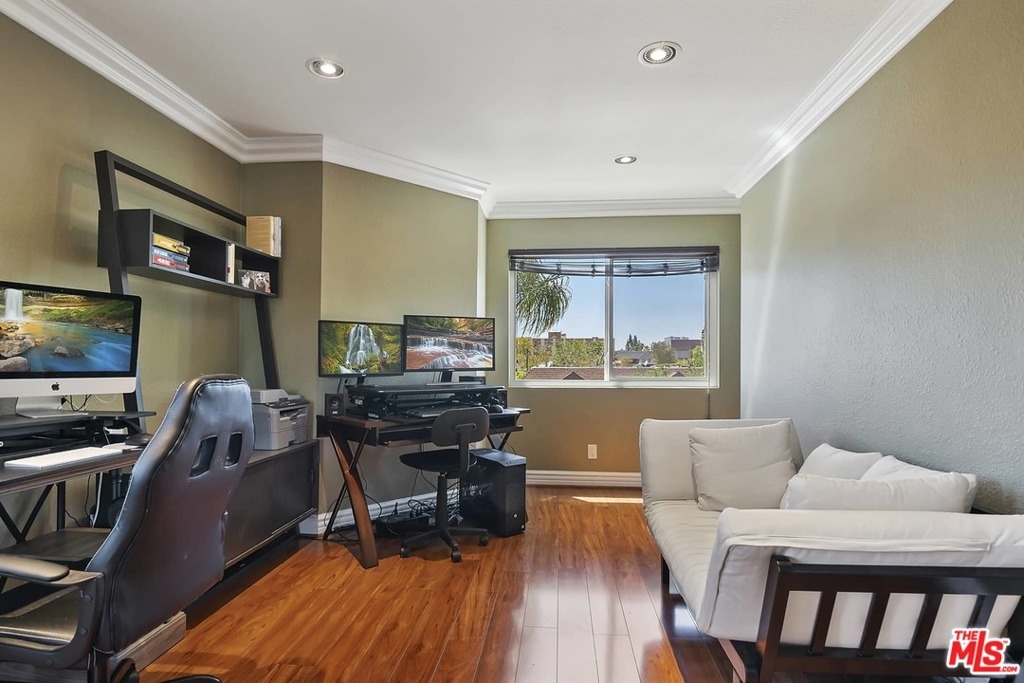 If space is what you are looking for this is your place! Extra large 3 bedroom/3 bath two story condo in beautiful Burbank for a great price. Located on a serene tree-lined street this home will check all your boxes. Light filled with a wonderful open concept main living area you will feel at home right away. The oversized kitchen has newer appliances including gas range and dishwasher. A large living area provides ample space for dining and relaxing around the fireplace. Enjoy the relaxing treetop views from the balcony and maybe take up some gardening. Upstairs you will find three bedrooms including the master with a walk-in closet. Complete with HVAC, newer in-unit laundry and numerous closets - this place has storage galore! Upper corner unit with low HOA dues and two separate parking spaces make this property unbeatable!