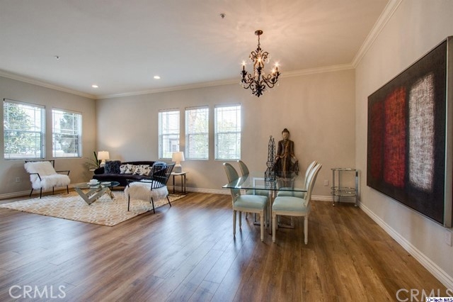 Fantastic opportunity to live near downtown Burbank! Close proximity to shopping, restaurants, entertainment, Burbank Schools and services. This 3 bedrooms, 2 baths luxury front unit condo is on the first floor, bright living and dining area with fireplace, a glass door leads to a large private patio. Gourmet kitchen with a granite countertop, stainless steel appliances and master bedroom with a large walk-in closet, high ceilings with crown molding, recessed lighting, laundry room with side by side w/dryer hook-ups, laminated wood floorings, two gated parking spaces with room for storage and 24 hours camera surveillance for extra security.