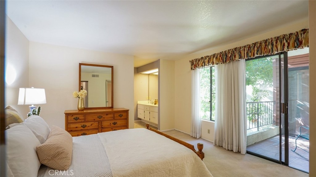 Welcome Home. You must see this beautiful move-in ready condo. As soon as you enter this lovingly cared for home you will find the large living room with a gas fireplace and sliders that lead to a front porch overlooking a quiet green garden with well manicured lush trees creating the allusion of being perched in a treehouse. The kitchen features plenty of counter space and storage. Spacious bedrooms; the primary with en suite bath featuring dual sinks and an extra large walk-in closet. The second bedroom is currently used as an office with beautiful custom Teak built-ins. Perfect space for Zoom calls. Between the master and guest bedrooms is a "Jack-and-Jill" balcony that feels as if nestled among the leaves in a large tree from below. Laundry closet in the unit and 2 side-by-side secured underground parking spaces. The complex also features a spa tub and workout room. This home is located on a quiet Burbank street and close to McCambridge and Earthwalk Parks as well as local shopping and restaurants. Freeway accessible and quick easy access to downtown Burbank and the Empire Center.