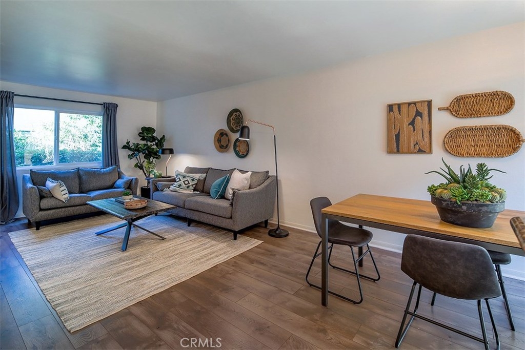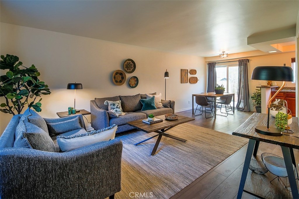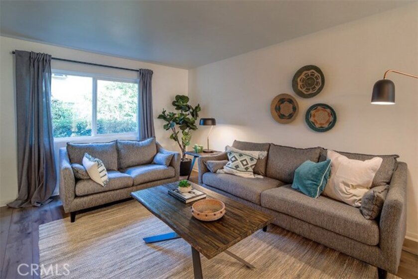 LOCATION, LOCATION, LOCATION Tastefully updated condo near beautiful Downtown Burbank, Empire Center, and Burbank Airport. This cozy condo has 2 bedrooms and 1 1/2 baths with 980 square feet of living space. This unit features an open floorplan with newly installed laminate wood flooring throughout, in-unit laundry, granite counters in kitchen and baths, freshly painted interior, newer window coverings, newly installed A/C Window unit, fenced in patio, and carport parking. The complex features a a tropical greenbelt with a water fountain, swimming pool and fitness gym. Closed Circuit Cameras are located throughout this gated complex for added security. Low HOA fees! Hurry this won't last long! Virtual Tour https://my.matterport.com/show/?m=JgRc7thwYKM
