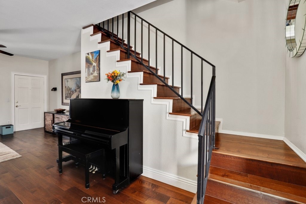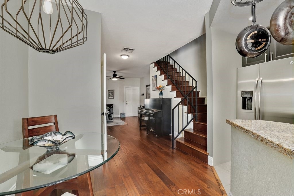 Beautifully maintained, end unit condominium in the heart of downtown Burbank. This home has so much to offer including a large living room with a warm and inviting fireplace, updated kitchen with granite countertops, eating area off kitchen and ½ bath on first floor. There is a lovely, private patio off the kitchen. Upstairs, you will find two spacious bedrooms each with its own bathroom, its own small balcony, and custom closet doors. Gorgeous hardwood floors throughout. Other features include Nest smoke & carbon monoxide detectors, Nest thermostat that controls the newer central heat and air, and newer water heater. Washer, dryer and refrigerator are included in the sale. Unit comes with two assigned parking spaces. Low HOA dues cover water and trash. Close to all amenities.