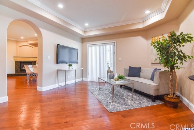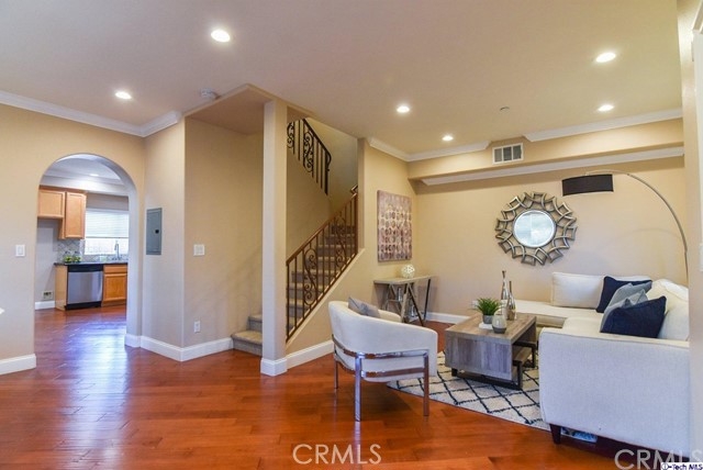 Live in the lap of class and luxury in a FHA approved Complex! Built in 2007 and located in Burbank, this beautiful unit features 3 bedrooms, 2.5 bathrooms and 1,650sqft of living space! Gorgeous laminate flooring running through out with intricate ceilings, crown/baseboard moldings, recessed lighting, laundry area in unit and a fireplace in the living room! Granite counter-tops in the kitchen with tile backsplash and stainless-steel appliances all nestled under a trey ceiling. Well-lit bathrooms with granite counter-tops and spacious bedrooms with tons of natural lighting and ample closet space! Master bedroom with an en suite, walk-in closet and a private balcony with a tree top view! Located near the city center, which is a short distance from Old Town Burbank's shops, restaurants and theaters, yet adjacent to the hills!