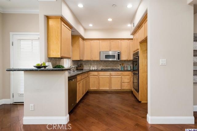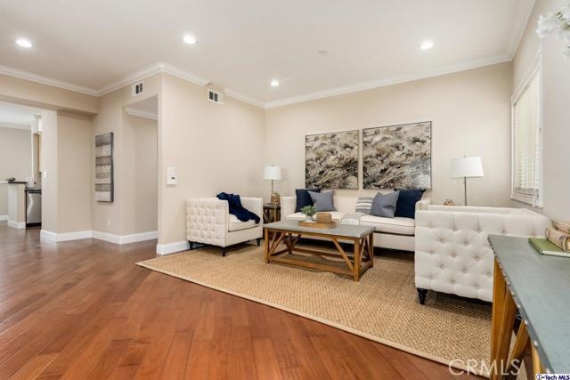 A rare top-level condo in the prime city of Burbank! Built in 2007, this 3-bedroom, 2.5-bathroom home provides an amazing open floorplan featuring pristine laminate flooring, elegant accent moldings, and recessed light throughout. Delight in splendors of a most charming living room offering a marvelous, raised hearth stone fireplace with a chic mantle place, perfect for all entertaining or curling up in front of a warm fire with a good book. Enjoy a scrumptious meal on the large dining room which face an open kitchen complete with built-in appliances, honey tone cabinetry, and glossy granite countertops with a raised corner bar top. Each of the three beautiful bedrooms are provided with generous space and built-in closet space apart from the primary bedroom which also includes a private bathroom. As part of well-secured complex, with elevator, residents are provided with tandem parking for two cars in the community garage. Poised in the heart of Downtown Burbank, this home is nearby local markets, shops, popular dining options, hiking trails, parks, easy access to the 5 freeway, and so much more! Welcome to Burbank!