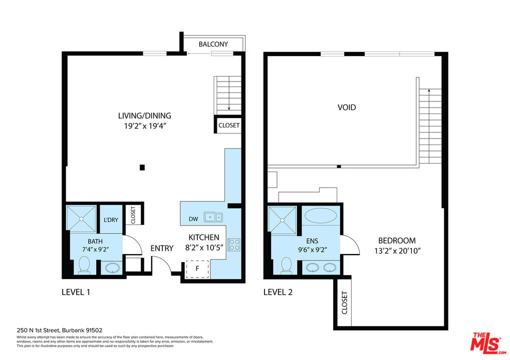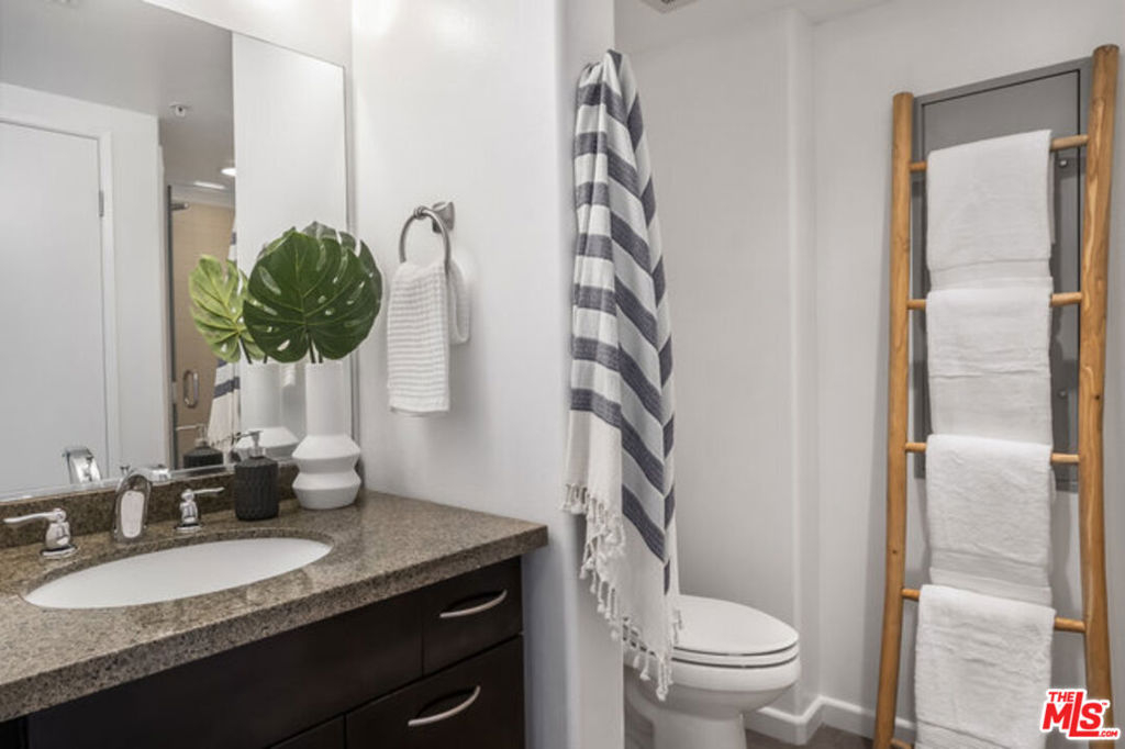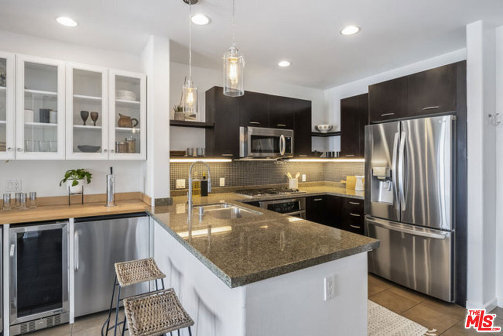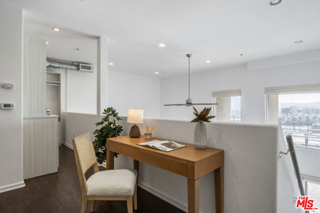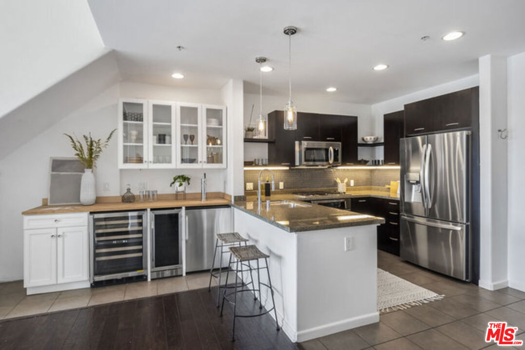 Welcome home to this modern and sophisticated Loft Style, top floor, corner unit condo located in the heart of Downtown Burbank at The Collection. This large, open concept layout boasts 1120 sq ft of living space on two separate levels - perfect for live+work from home with no one above you. Open the door and be greeted by warm, natural light which pours in from the floor-to-ceiling windows. Rich, wood floors throughout. Handsomely upgraded with upgraded stainless-steel kitchen appliances, Bosch in-unit W+D, LG fridge, and a bar with its own tap. Amenities include 2 side-by-side parking spaces, storage unit, an outdoor pool, putting green, BBQ, Fire pit, Club house, Rec Room, Gym and much more. Take the elevator and be instantly transported to an array of entertainment, movie theaters, coffee shops, dining and shopping choices await all around you. Minutes to Disney, NBC, Universal, Warner Bros and the new Whole Foods. Easy freeway access. Located within Burbank Unified School District.