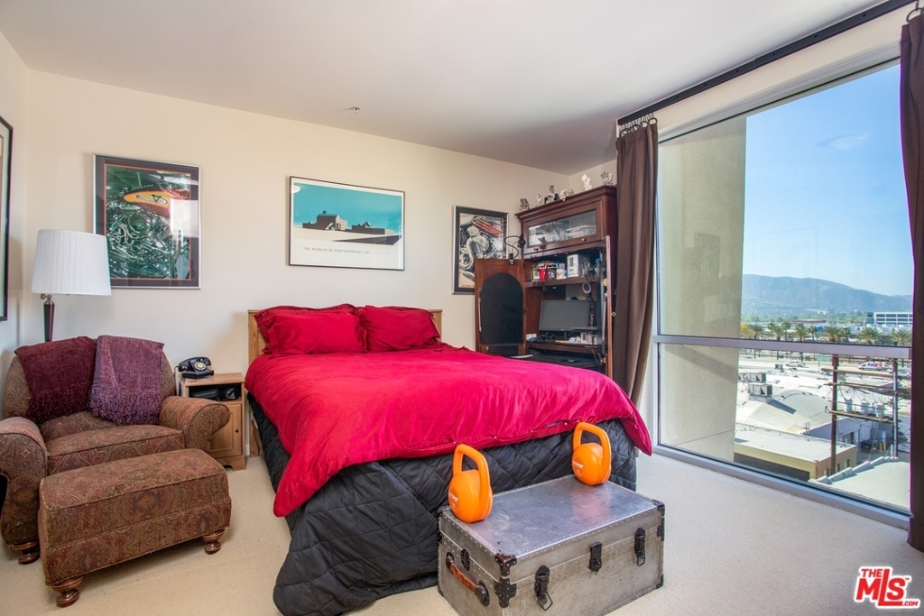 Top floor luxury living in the highly coveted Burbank Collection located in the heart of Downtown Burbank. This modern complex is located directly across from the AMC theaters and close to multiple restaurants and shopping. This beautiful unit features soaring 14+ ceilings and spectacular views of the valley from the large windows that fill this unit with light. There are 2 en-suite bedrooms, one downstairs and one upstairs. The open floor plan has a dining area, a wonderful kitchen with stainless steel appliances, and there is laundry inside the unit. The amenities are plentiful with a gorgeous pool, recreation and game room, gym, putting green, and bocce ball court. There are 2 side by side assigned spots in the gated area of the parking garage plus storage. This rare unit won't last, come see it today!