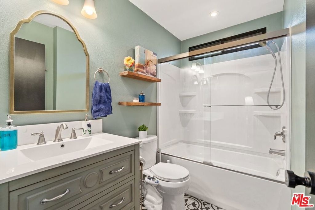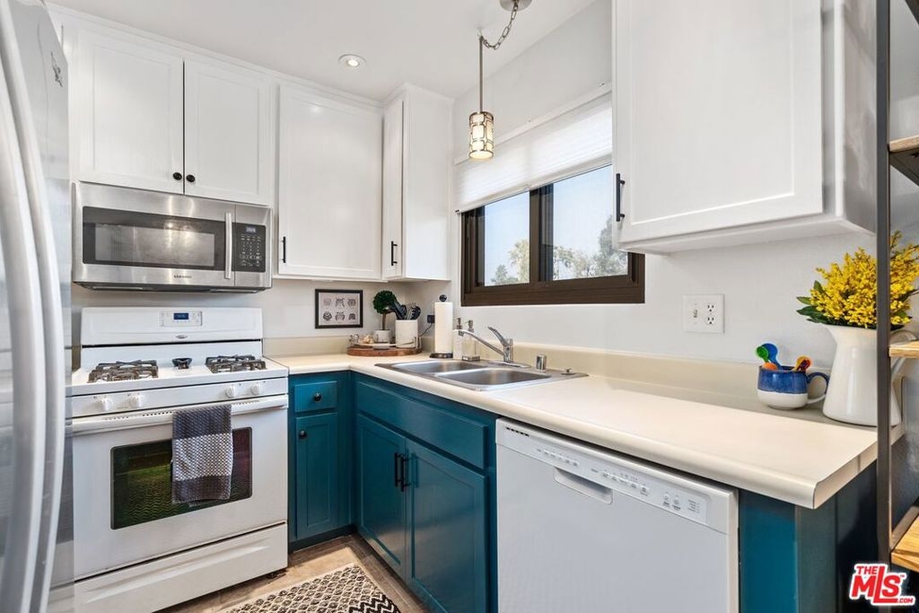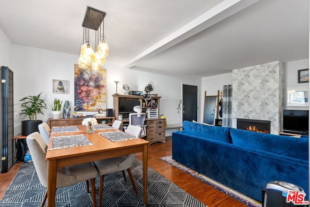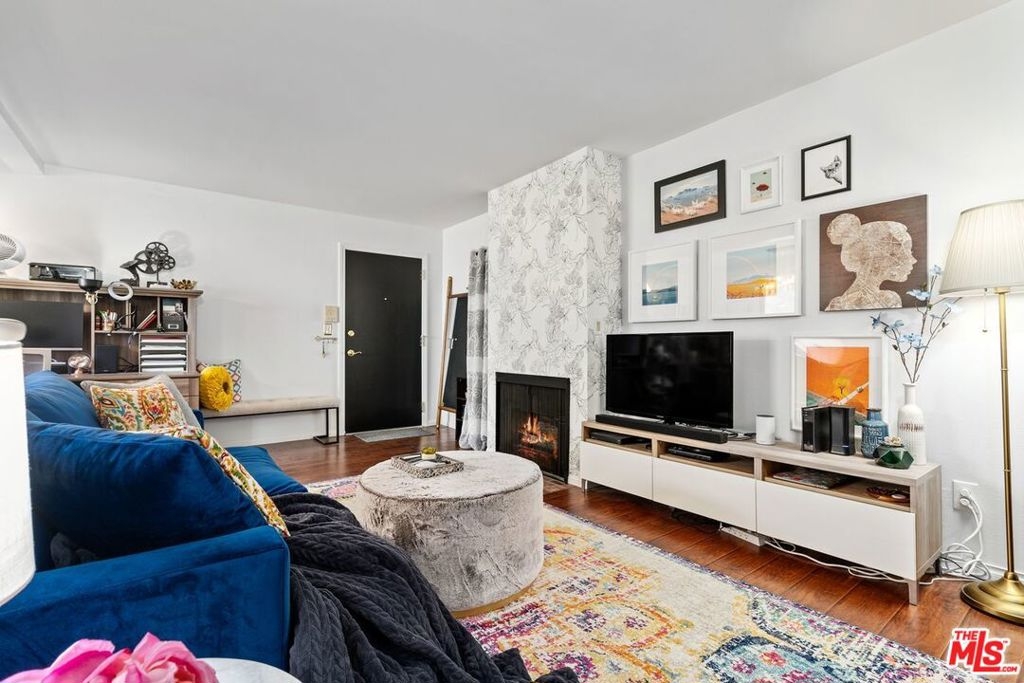 Amazing Opportunity in Burbank, Close to studios, you will find this beautiful one bedroom, 1 bath condo with gorgeous fixtures and upgrades, plus two side-by-side parking and laundry in unit! This space has a layout which feels nice and roomy, offering a spacious bedroom with a large sliding door out to your own private balcony, laminate wood floors and triple paned windows throughout, a beautiful fireplace with decorative wall and a dining area with a big window bringing in natural light. The kitchen has recessed lighting and two-toned cabinets; the lower half with cool, jewel tones. The remodeled bathroom has stunning, black and white tiled flooring and a new vanity, with a laundry area located just off the hallway. Outside of the unit, the building has a center courtyard with sitting area. Includes assigned 2 side-by-side parking in a subterranean garage. Smaller building with just 15 condos. Pets are allowed; 75 lbs and under. Low HOA Dues of only $293.00 per month which include water, sewer, waste and gardener for common areas. Located in a great area of Burbank, close to cool restaurants, shopping and studios!