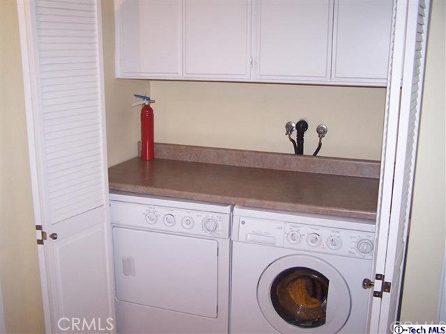 Completely remodeled 2 bedroom 2 1/2 bath unit, featuring gorgeous American cherry hardwood floors upstairs and down, crown moldings, tons of storage, private balcony & patio, and the only private 2 car garage in the complex. The living room has a gas-burning fireplace with granite hearth and custom wood mantel. The kitchen features plenty of designer touches including granite countertops, all stainless steel appliances, a tumbled stone backsplash, and easy access to the adjacent dining area making entertaining a breeze.Master bedroom amenities include a built-in shelving system in the walk-in closet, master bath with his & hers vessel sinks, and a private balcony with views of the Verdugo Mountains. Other features include updated electrical and plumbing, newer washer & dryer in the enclosed laundry area, as well as central heat and air conditioning. Located just minutes from Warner Bros. & Disney Studios, this unit is in a small complex which features a swimming