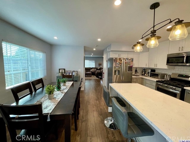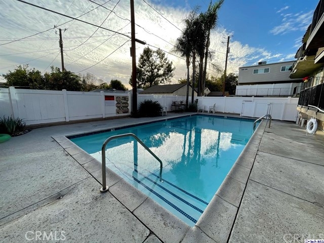 Wow! Fabulous, spacious, two story townhome (end unit!), updated with beautiful floors, recessed lighting, smooth ceilings, living room with modern gas fireplace, knock-you-dead gorgeous kitchen with custom waterfall quartz counter top and breakfast bar, stainless steel appliances, adjoined by the dining area that opens to a private patio, and 1/2 bath, all downstairs. Upstairs there are two bedrooms, each with its own bathroom, and walk-in closets; the laundry is also upstairs, plumbed for side by side washers & dryers. The master bedroom opens out to a balcony with a westward view and pool beyond. The building is adjacent to a single family neighborhood which makes it less dense, and allows for ease of parking when you have guests over. The unit has two subterranean side by side parking (not tandem) spaces plus storage. One pet is allowed. All this, and only a $350/month association fee!! This one is a must see''!!