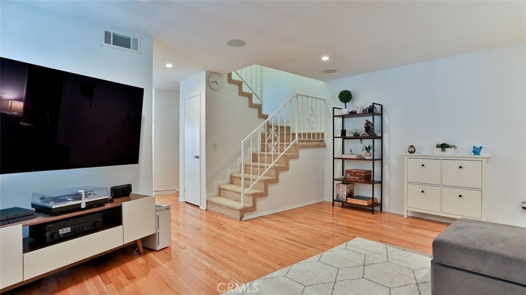 Welcome home to this beautiful 2-story townhome in a superb Burbank location! As you enter into the freshly painted 1,156 sq. ft. unit you have a clear view of the semi open concept living area. With recessed lighting throughout the unit, you can dim the lights at a perfect setting while you enjoy a movie with the family and feel like you are in a theater with the built in surround sound system, all while being next to the cozy gas burning fireplace. The new dual pane windows and nest thermostat to control the Central AC/Heat will help keep you feeling comfortable. The first bathroom is located right between the living area and dining/kitchen space perfect for guests. Continue to the private back patio area to a freshly redone Zen space perfectly located right next to the fully equipped kitchen & formal dining area that fits a large table easily. Upstairs there are two spacious bedrooms, each with its own bathroom. The master bedroom has a fully upgraded bathroom, walk in closet and newly upgraded private patio. The laundry is also upstairs, with side-by-side washer & dryers that are included. The HOA is $350/month and includes water, gardening of common areas, trash, building insurance & pool maintenance. Don’t miss out, this unit will go fast!