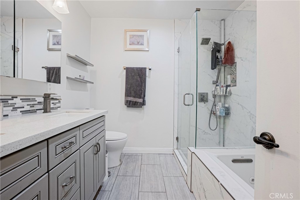 One level, two levels, three levels, four... Enjoy every inch of this beautifully designed, naturally lit, and spacious 2 bedroom, 1 and a half-bath condo. As you enter the property you are met with a large living area that leads into a private patio. From the living room, take a few steps down to your attached two-car garage or a few steps up to the open-concept dining area and kitchen. This modern kitchen boasts stunning countertops, top-of-the-line appliances, and ample cabinet space, making it a dream for both everyday living and entertaining. A generously sized half bathroom is also conveniently located on this floor. Continue up a few more stairs to find two equally spacious bedrooms, each enhanced by oversized walk-in closets. The primary bedroom features a charming balcony perfect for unwinding before bed. Between the two bedrooms, you’ll find a full bathroom with a separate tub, a walk-in shower, and an elegant double-sink vanity. A large washer and dryer, complete with plenty of shelving, make laundry day effortless. Step outside your front door and immerse yourself in nature as this community is surrounded by lush greenery, beautifully complemented by a tranquil water fountain. Take a refreshing dip in the pool, break a sweat in the gym, or host a gathering in the residents’ clubhouse. Located just minutes from shopping and entertainment, this home offers both convenience and comfort. With central air and heat, it’s the perfect place to call home year-round. Come fall in love with this beautiful gem!
