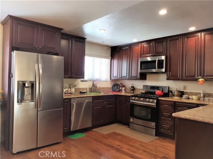 Welcome to 1711 Grismer Avenue #52, a bright and beautifully updated townhouse nestled in the prestigious Villa De Los Reyes community in Burbank. Set on a charming tree-lined street within a highly desirable school district, this tri-level residence offers an airy, light-filled layout with thoughtful upgrades throughout. Step inside to find rich wood flooring, soaring ceilings, and an elegant crystal chandelier that anchors the living space. The great room is enhanced with recessed lighting and stylish exposed railings, creating a modern yet inviting atmosphere. The private patio just off the living room is perfect for entertaining or relaxing outdoors. The updated kitchen features stainless steel appliances, granite countertops, and custom wood cabinetry—ideal for both everyday living and hosting. Upstairs, you’ll find three well-appointed bedrooms, including a spacious ensuite primary suite with access to a sunlit balcony—your own private retreat. Additional features include: Central air & heat, In-unit side-by-side laundry (conveniently located upstairs). Attached private 2-car garage with direct access and an automatic door The Villa De Los Reyes community offers beautifully landscaped grounds along with resort-style amenities such as a sparkling pool, jacuzzi, gym, recreation room, and ample guest parking. Enjoy unbeatable convenience with close proximity to: Burbank Town Center, Sprouts Farmers Market, McCambridge Park, Hollywood Burbank Airport, Empire Center With easy access to the I-5 freeway and vibrant downtown dining and cafes, this home combines comfort, style, and location. Welcome home.