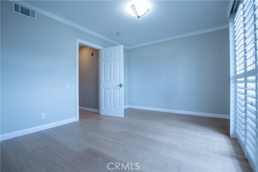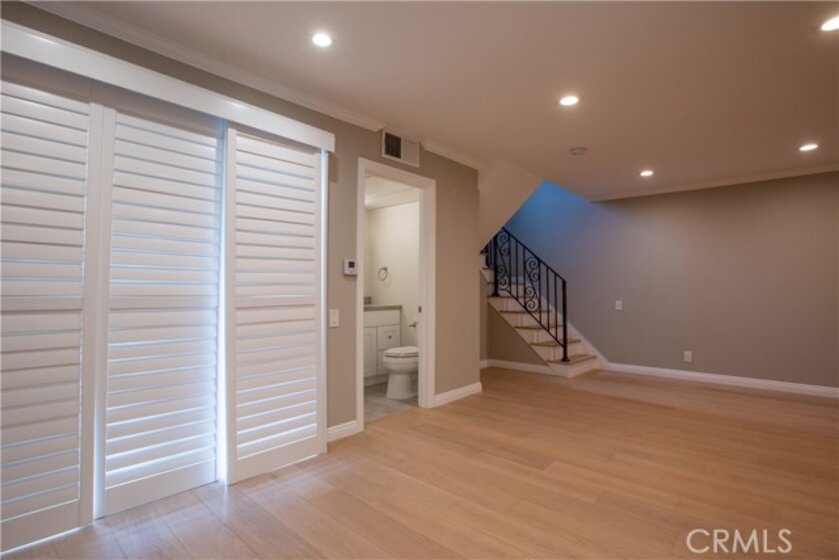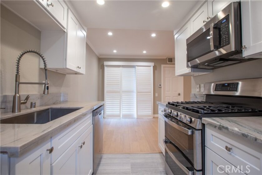 Shows like a model. This beautiful 2 bedroom, 2.5 bath unit has been completely renovated and is a must see. The new kitchen features new built-in appliances and a dining area that leads to the balcony. There is white oak engineered flooring throughout the unit and a beautifully designed staircase leading up to the second level. There are two primary bedrooms, each with their own bathroom. There is a half bathroom on the first level and lovely new plantation shutters throughout. The new windows are double paned, and a new HVAC unit has been installed. The laundry is located inside the unit and there are 2 covered parking spaces. Don’t miss this opportunity to own in Burbank.