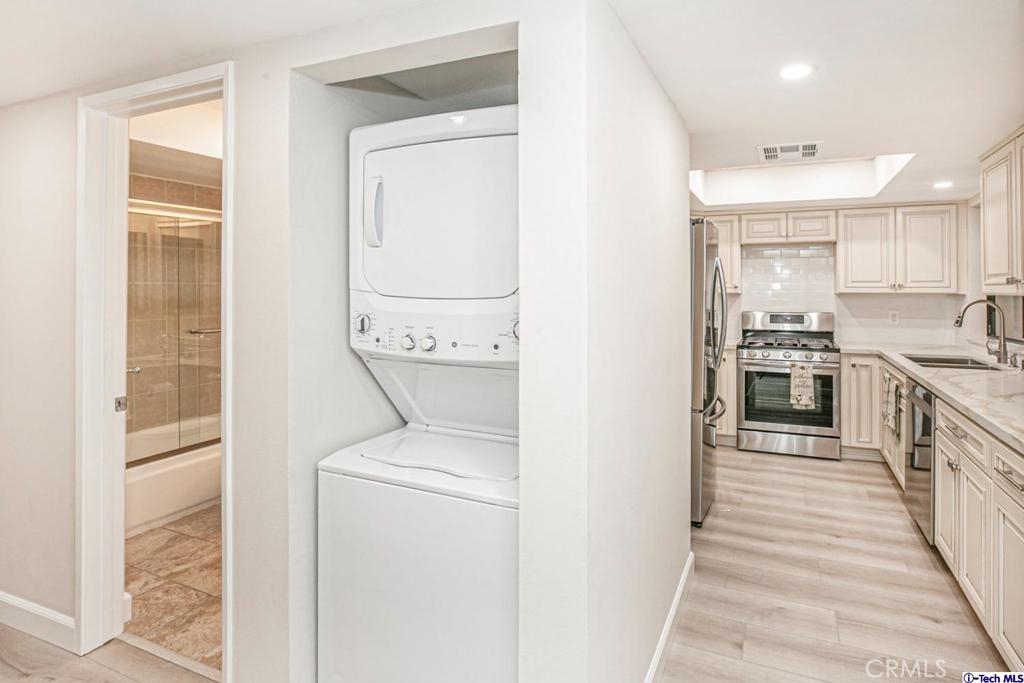 Situated in the heart of Burbank, walking distance to Downtown Burbank and the Town Centre, this condominum has everything you're looking for. The unit features 2 bedrooms, 2 baths and 2 parking spaces (#1;#2). A nice front balcony and spacious sun-filled patio accessible from the living area. Master bedroom has a huge walk-in closet. This unit is fully remodeled. Move in ready. Laundry in the unit.