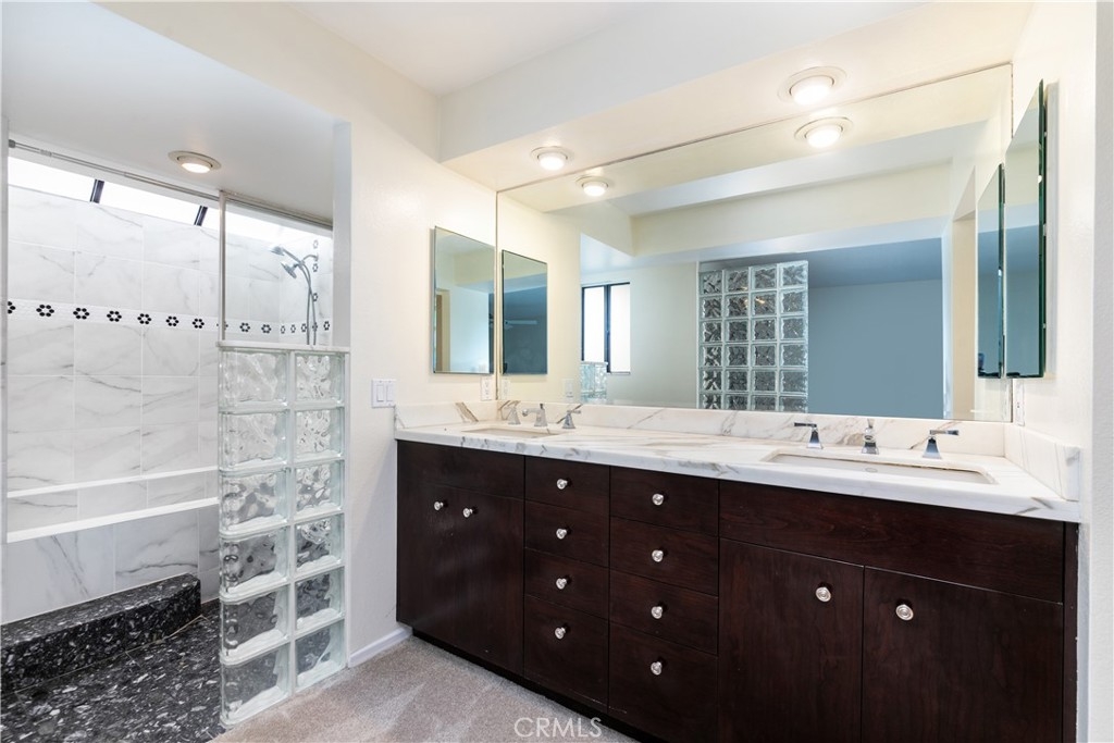 Sought after Parkside Equestrian Estate Townhouse. Spacious gated front patio views entrance to vaulted ceiling living room with corner fireplace with canister lighting. A few steps up to a formal dining room with built in dry bar area. Open pass through counter area to gourmet kitchen. Abundance of counter space, cabinets, chrome refrigerator, oven/range and cozy breakfast nook. 3rd Bedroom is a convertible den with 3/4 Bath, could sleep a guest. Sumptuous master suite with 3 closets with some walk in areas. Vanity double sinks and unique sky light over tub. Large second bedroom with full bath and good closet space. Laundry area adjacent to spacious 2 car garage with marvelous built in storage. Some wood floors and new carpets and newly painted. Resort style pool and lounge area. Also gym and meeting area. A true find!
