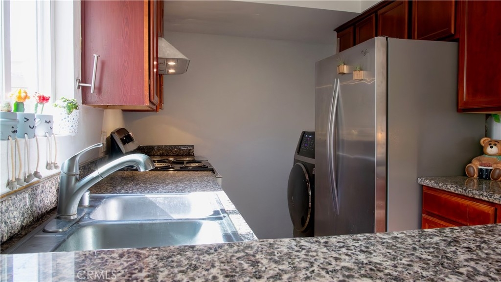 Peacefully nestled in a green oasis towards the back of the complex is this updated Townhome. Perfectly located just minutes from McCambridge Park, shopping and dining in downtown Burbank, the Empire Center and Costco, with a Walk Score of 84! Home offers open floor plan, laminate flooring through-out, Freshly painted downstairs, granite counters, newer stainless steel appliances, including newer in-unit Smart Combo washer/dryer and dual pane windows. Relax, BBQ and entertain on your spacious fenced-in patio, approximately 10’ x 16’. Private 1 car carport with storage cupboard. Located in desirable Burbank School district, amenities include *Greenbelt grounds, swimming pool and fitness gym, brand new roof, strong HOA with healthy reserves, low HOA fee, pet friendly building. Make the move to this desirable Burbank location!
