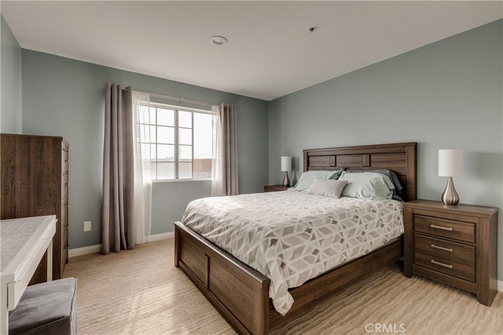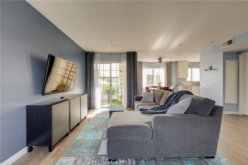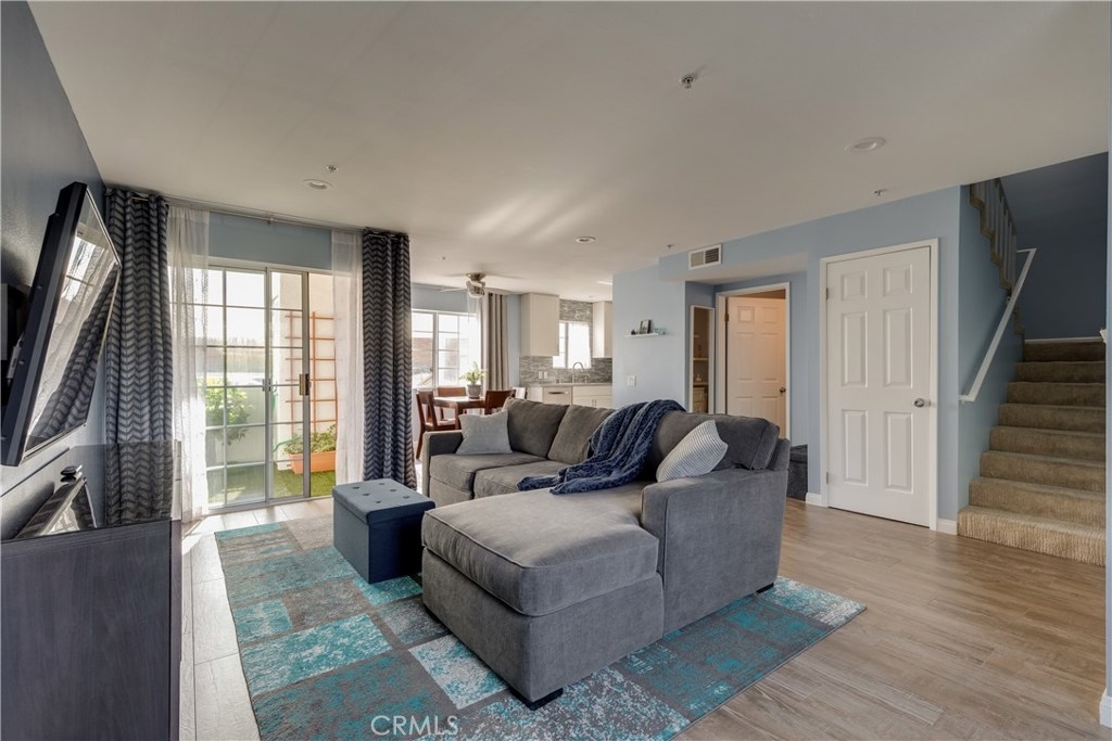 As you enter the 3 story unit you are welcomed by beautifully comforting wood grain tile floors in the living room, continue pass the dining area and enter the remodeled open kitchen with white craftsman cabinets, stone countertops, and glass tile backsplash. A downstairs half bath with stone countertops and custom design accent wall, private balcony off the living room, and overall flow of the first floor make for a great space to have a date night in or entertain friends or family. At the end of the day you head upstairs to the spacious 2 bedrooms, with recessed lighting, and a large remodeled full bathroom, complete with a tile shower tub combo, and a large vanity with lots of counter space. And if building living with an outdoor space is what you want, then come see the third floor private patio great for a morning coffee, sun bathing, or night cap. All of these conveniently located near McCambridge Park, Burbank Tennis Center, Costco, and shopping and dining at the Empire Center.