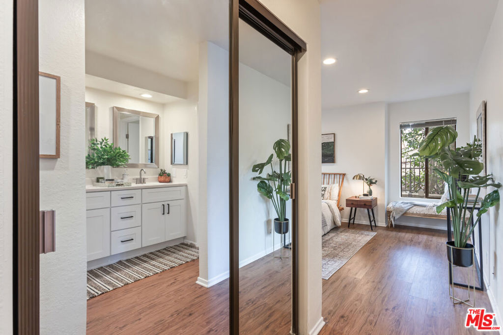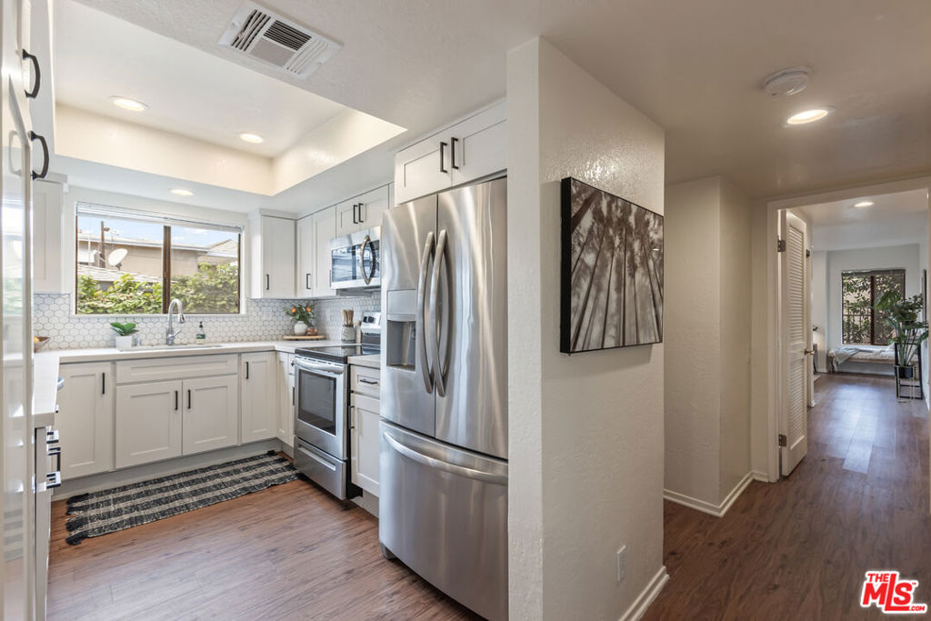 Welcome to luxury living in this recently renovated West facing 2 bed/2 bath single story condo. A perfect 10 out of 10! Tucked away in the rear of the building for ultimate privacy, this residence offers a light-filled living room with a decorative fireplace, open dining, a cook's kitchen, spacious primary suite with two closets, renovated bathrooms, private patios off both the living room and primary suite, and an in-unit laundry room with a full-size washer and dryer. Stay comfortable all year round with central air and heat. Enjoy the convenience of two side-by-side parking spaces and a separate storage unit. The secure, gated community's interior is a garden oasis awash with shade trees, fragrant lavender and lush greenery lining the breezeways. Amenities include a relaxing spa, sun deck, and fitness room. Located in a highly desirable and convenient-to-everything neighborhood just minutes from downtown Burbank, highly rated Burbank Schools. Low HOA dues include earthquake insurance. Your ideal home awaits!