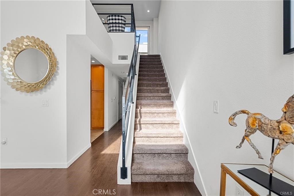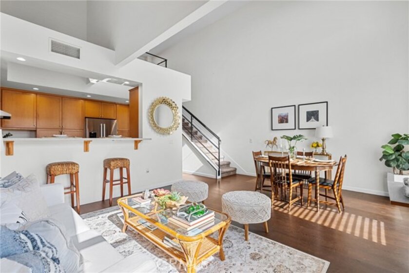Welcome to 201 E Angeleno Avenue unit 426, a stylish dual-level loft condo at Burbank Village Walk. Perfectly situated in the heart of trendy Burbank. This prime location puts you just steps away from theaters, eateries, coffee shops, fitness studios, and everything downtown Burbank has to offer. The open-concept floor plan with magnificent soaring ceilings and abundant light filled rooms. Kitchen overlooks the living room with breakfast bar with seating ideal for both everyday living and entertaining with brand new high end stainless steel refrigerator and cooktop, this kitchen is a dream with abundant counter space and cabinets, all in pristine condition. This Two private balconies on each floor helps blend the interior and exterior space, offering the perfect spot to relax with your morning coffee or unwind in the evening. Roof top large patio with views of Burbank and surrounding hills ideal for enjoying morning coffee or evening sunsets., truly breathtaking! Modern finishes add a touch of sophistication throughout, creating a turnkey home in one of the most sought-after locations in Burbank Village Walk. Walk upstairs to a spacious loft that offers endless possibilities—perfect for an office, bedroom, guest space, or cozy retreat and attached 3/4 bath, The tall ceilings and abundant light make this space really happy space. The townhouse is equipped with new central heat and air for year-round comfort. Located in the highly sought-after Burbank Village Walk complex, residents can enjoy a range of on-site amenities including a refreshing heated pool, BBQ grills, an outdoor patio fireplace with seating, a fitness center, and 24/7 security. Just steps away from some of the best restaurants, entertainment, and the Metro Link, you’ll have everything you need at your doorstep. Don’t miss the opportunity to own this rare townhouse in Downtown Burbank.