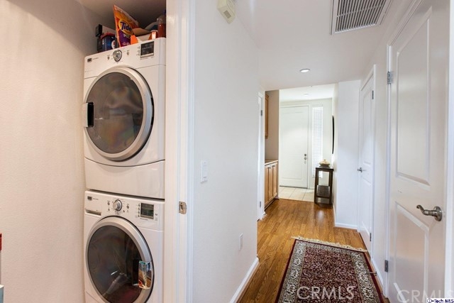 Downtown Burbank living at its best! In the sought-after Burbank Village, a light filled 1,450-SqFt, 1-bedroom, single loft, 2-bathroom condo with lovely views of the complex welcomes you home! A warm tone kitchen features a tiled backsplash, built-in appliances, a unique open ceiling & a pass-through window into the living room. Down the hall, find a bright living room with high ceilings, beautiful wooden floors & access to an open front balcony with unobstructed views of the glittering community pool below. The bedroom is illuminated with natural light & is across from a bright split bathroom featuring plenty of counter space & storage. Upstairs, find a quaint loft overlooking the living room, a full bathroom & closet, plus a rooftop sundeck with some views of mountains, a charming space for entertaining. The loft makes a great guest bedroom or an open office space. Additionally, this home features a convenient laundry closet for a stackable washer/dryer unit. Part of an HOA, the building has a community pool, 2 side by side parking spaces are near the elevator, gym, BBQ & fire pit. Only minutes away from local restaurants & shops, Joaquin Miller Elementary School, Burbank High School, Burbank Town Center, IKEA, markets, and plenty more!
