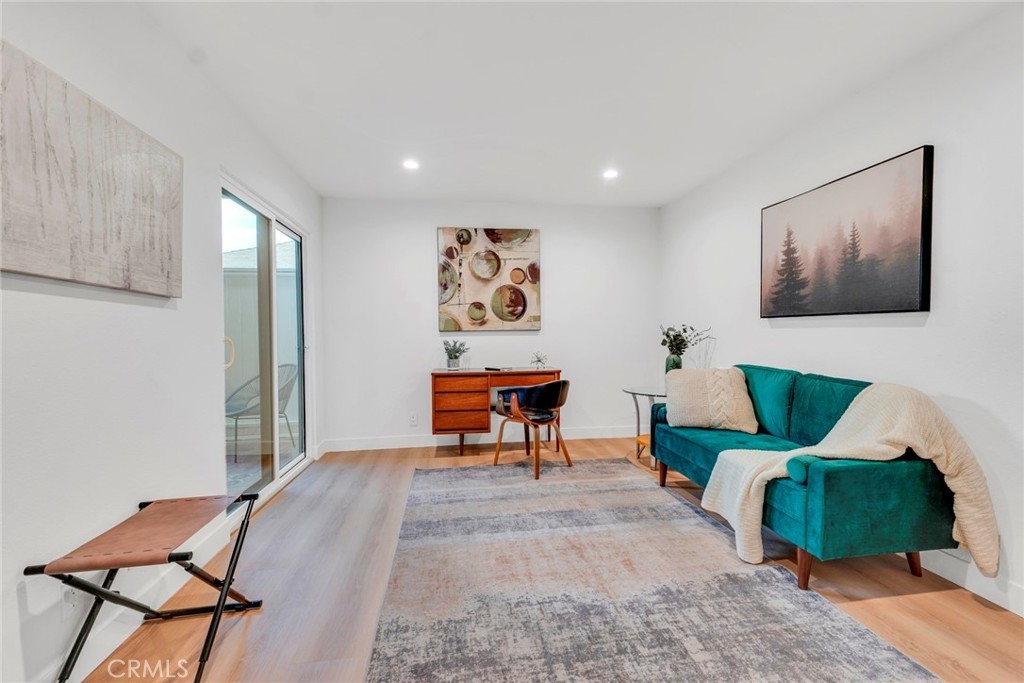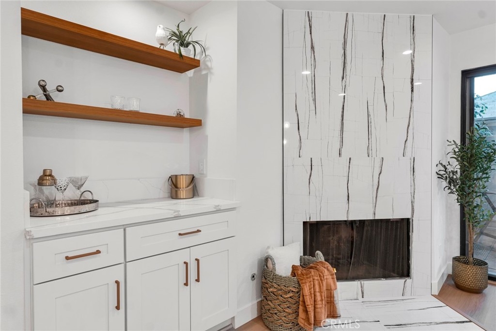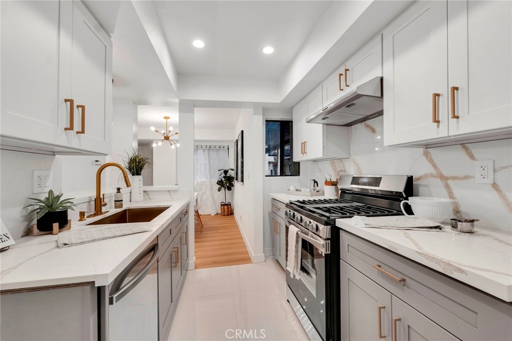 Here is a stunning remodel of a gorgeous condo with a prime location above Glenoaks in Burbank. You can see that this renovation is a labor of love with attention to detail-- and it's all about fine living here! The layout of this home is ideal with each bedroom on the opposite side-- great for privacy. The kitchen is a cook's dream with beautiful quartz counters, high end brass finished hardware, soft close cabinets, an oversized metal sink, and stainless steel appliances. The living room is large with plank flooring, recessed lighting, a dining area, a cocktail counter, and a dramatic fireplace with more of that absolutely gorgeous quartz. We know outdoor space is important, and the private patio is great for relaxing or outdoor dining, and it can be accessed directly from each of the bedrooms. The primary suite has 2 large closets and a stunning private bath with gorgeous finishes. This condo has its own laundry room. The building is great with 2 side by side parking spaces, and an elevator for easy access. We can't say enough about this amazing location with easy access to shops and dining on Glenoaks, McCambridge Park, and of course all that trendy Downtown Burbank has to offer.