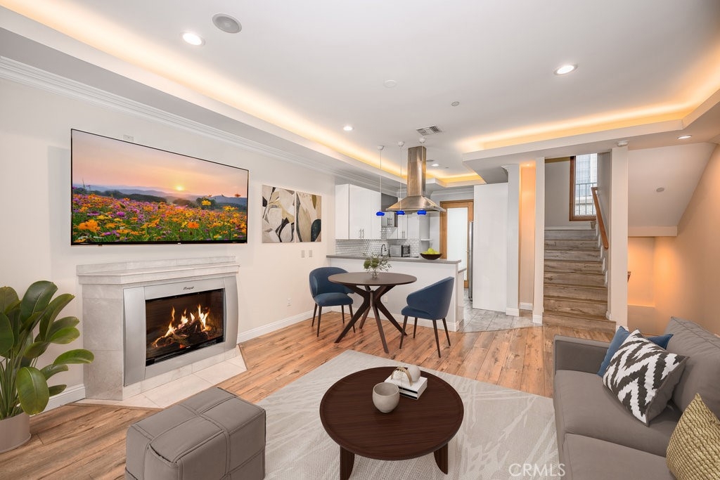 Discover this beautiful townhome, built in 2007, nestled in the vibrant heart of Burbank. Experience the ultimate convenience, just minutes away from trendy cafes, restaurants, shopping centers, parks, medical facilities, and easy access to freeways. Enjoy proximity to Whole Foods, Universal City, Disney Studios, Griffith Park, and Burbank Airport. This exquisite home boasts two generously sized bedrooms, each featuring its own en-suite bathroom, with an additional powder room downstairs for guests. The remodeled kitchen, updated in 2018, is a chef's dream, complete with stainless steel appliances, self-closing custom cabinetry, and essential laundry appliances—all beautifully complemented by elegant hardwood flooring. Step into the inviting living room, where high ceilings and recessed lighting create a light-filled atmosphere. Enjoy the warmth of a cozy fireplace and the charm of decorative wall niches. Both bedrooms offer ample closet space and open to a private balcony, perfect for outdoor relaxation. Additional highlights include direct access to a two-space tandem parking garage, providing both convenience and security. Situated on a highly sought-after street, this townhome perfectly blends modern style, comfort, and an unbeatable location near the best of Burbank’s shopping and dining options.