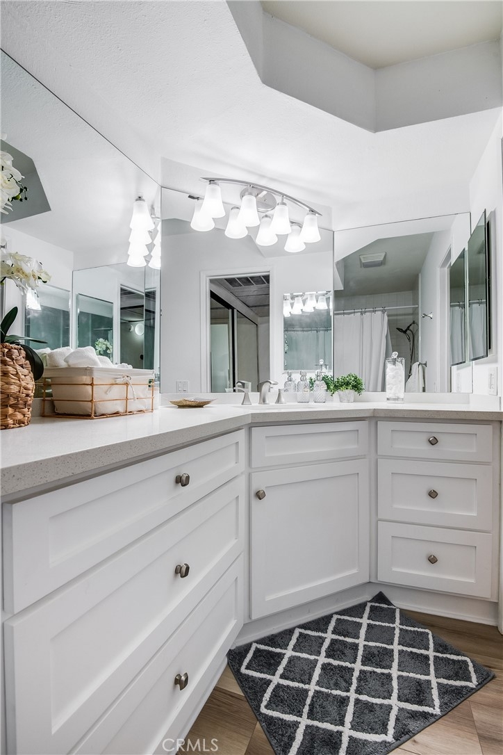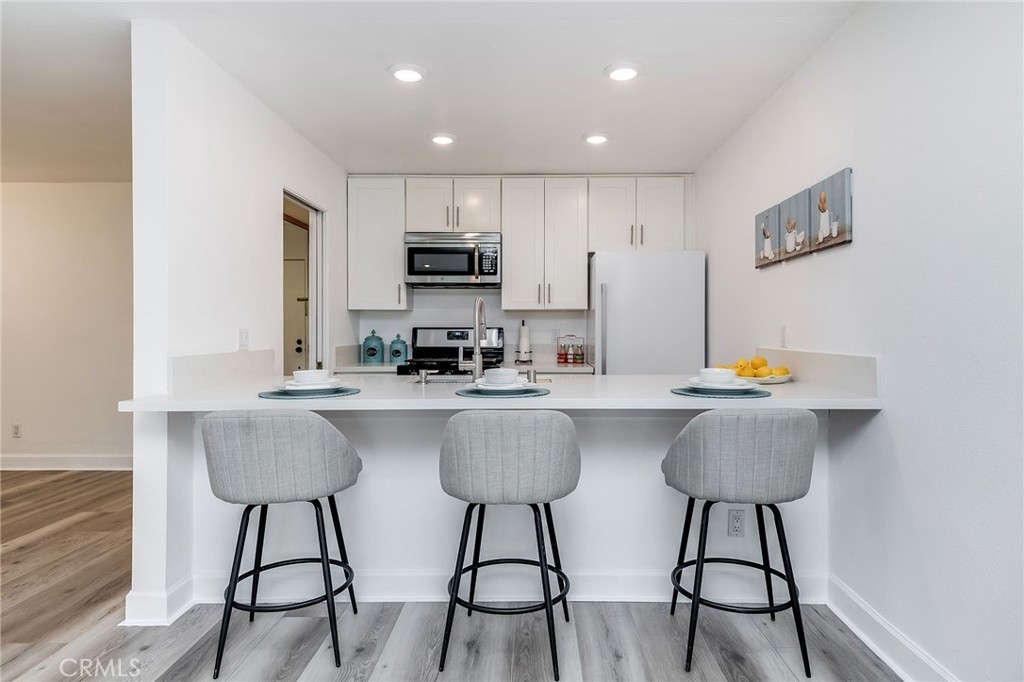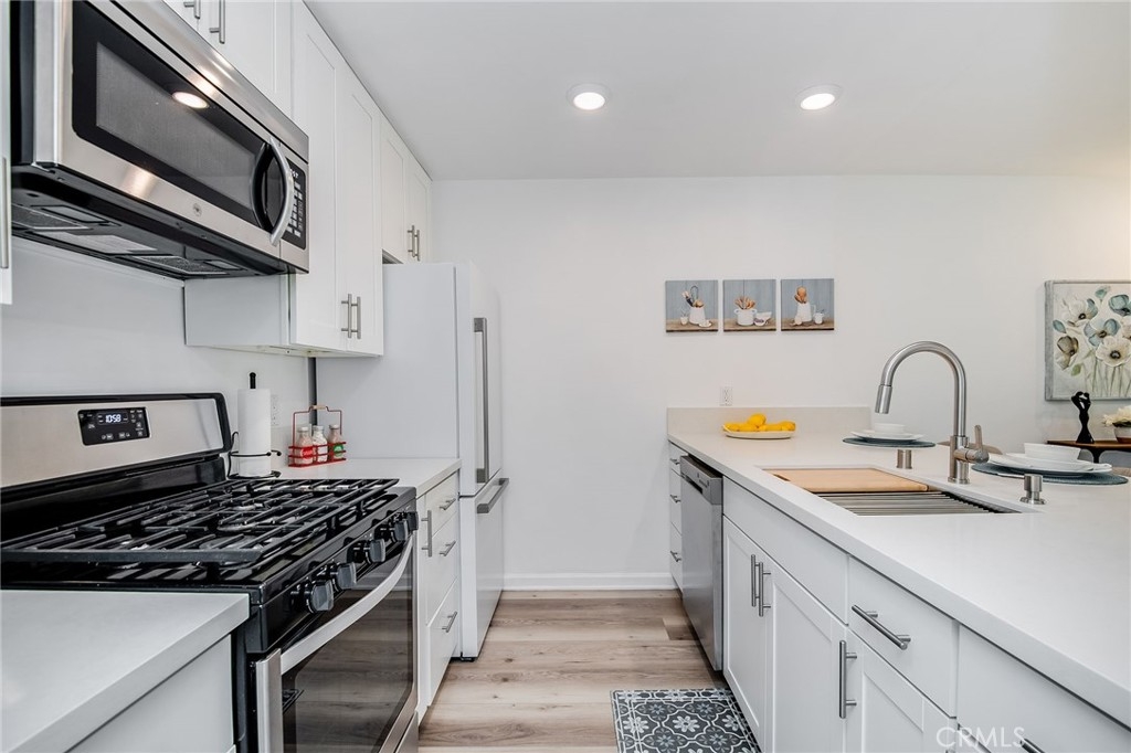 Welcome to this stunning, light, and bright remodeled condo in the vibrant neighborhood of Toluca Lake. This peaceful unit, located on the south side of the building, has been thoughtfully updated with new recessed lighting, double-paned sliding glass doors and windows, and luxury vinyl flooring throughout. The modern kitchen features sleek quartz countertops, a new sink, and an eating area, perfect for those who love to cook and entertain. The unit offers incredible versatility, with a large master bedroom with a walk-in closet and sliding glass doors. Adjacent to the kitchen is a bonus space that can be used as a dining room, office, or guest area. Enjoy breathtaking mountain views from the comfort of your enclosed patio, which adds an additional 81 sq. ft. of outdoor living space (not included in unit sq. footage). Convenience is key, with an in-unit washer and dryer and two dedicated gated parking spots with extra storage. The HOA provides amenities, including a pool, rec room, and sauna, which allow you to relax after a long day. Ideally located, you're just minutes from major studios (including Warner Brothers, Disney, and Universal) and within close proximity to Trader Joe's, Whole Foods, and popular dining spots like Forman’s, Mendocino Farms, and the iconic Bob’s Big Boy. Trendy shops and vibrant local culture are all right outside your door. This is your chance to live in a quiet oasis while being in the center of it all in Toluca Lake with Burbank schools and services!