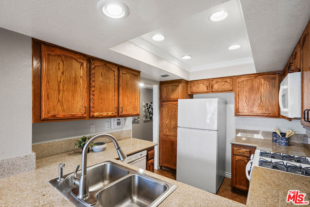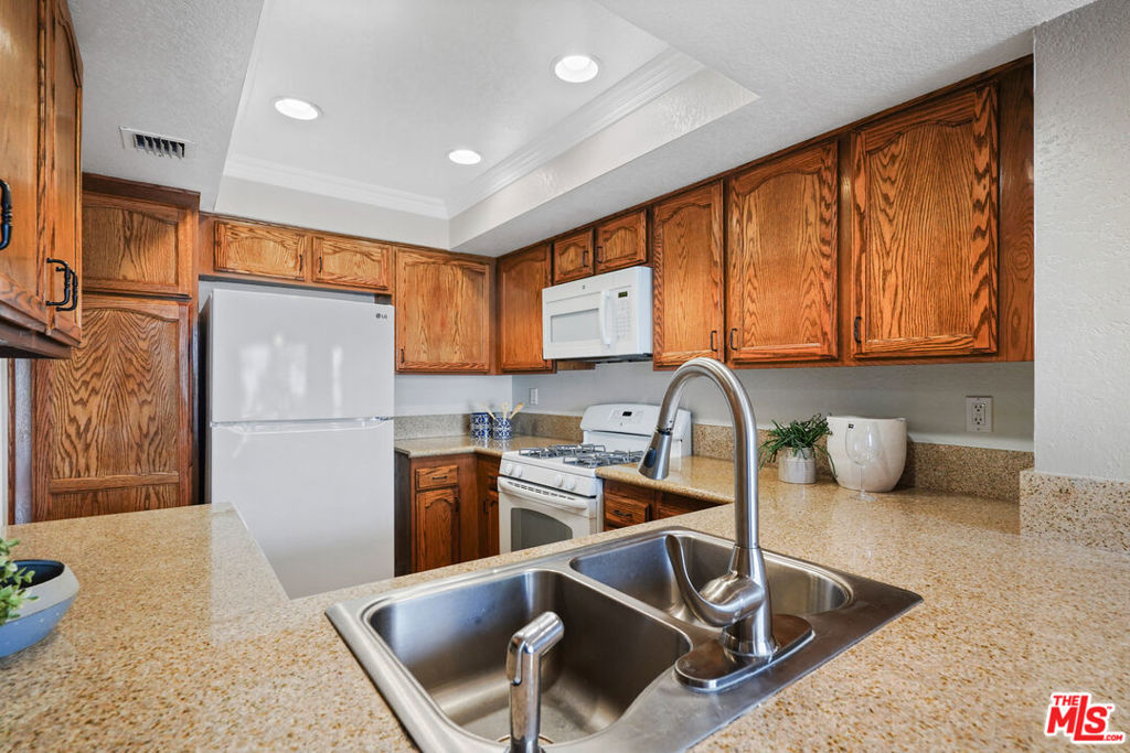 Welcome home to the highly sought-after Bethany Woods complex centrally located in the heart of Burbank. This spacious, 2 bedroom, 2 bathroom upper unit condo boasts an open floor plan. Curl up with a good book in front of the cozy brick fireplace in the living room. A large window gives you a front seat to the complex's verdant surroundings. Ready to unleash your inner chef? The roomy adjacent kitchen offers lots of cabinets and countertop space. The dining room opens to the kitchen's breakfast counter and the living room creating a cohesive space with an ideal flow for entertaining. The space is bathed in light thanks to the large glass door that leads to your private balcony with gorgeous views of the San Gabriel mountains. The generously sized primary suite has a private bathroom featuring double sinks with lots of counter space and even more storage. The second bedroom can also be an office or study as it sits off the living room. You will love the convenience of the two side-by-side parking spaces and the additional storage this gated complex offers. You will want to take advantage of the beautiful Burbank weather. Light up the grill in the shared BBQ area and after dinner melt the day's cares away in the relaxing spa. This home offers the perfect blend of suburban serenity and urban convenience. This gem sits in prime downtown Burbank. Highly sought-after Bethany Woods is truly a special complex. Beautiful tree-lined streets, easy access to freeways and local transportation and its proximity to all Burbank has to offer, make it a coveted spot for home buyers. When you are ready to venture out, start your day by taking a short stroll to the Miracle Bakery for breakfast and a latte. Spend some time at nearby McCambridge Park or the Burbank Tennis Center. Downtown Burbank is filled with boutiques, grocery stores, and all types of eateries. Your new home awaits you.