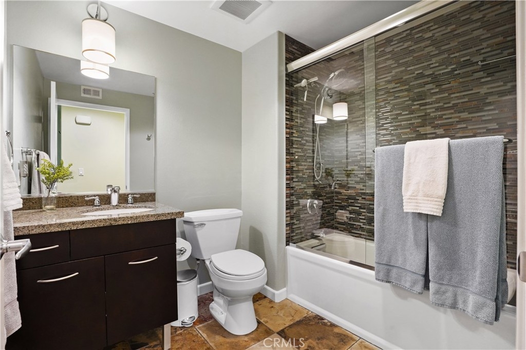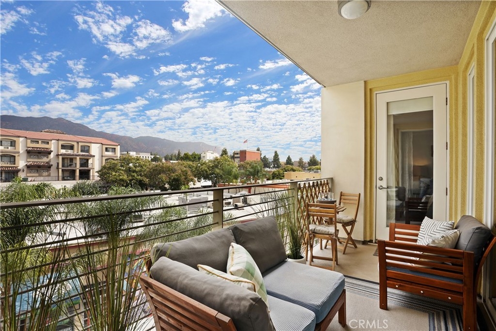Experience the comfortable and easy-care lifestyle in this spectacular Burbank condo that’s ready for you to move in, unpack, and relax! Enviably set in the highly desirable Burbank Collection building, this home has a coveted location right in the bustling heart of downtown. Inside, be greeted by a bright, open-concept interior that displays warm tones and newer rich hardwood flooring with cork underlay for soundproofing. Seamlessly connected, your sunlit entertainment areas make gatherings a bliss - from the cheerful living area to the chandelier-lit dining place. Try out some new recipes in the gourmet kitchen that equips you with a host of appliances, handsome cabinetry, and granite countertops. Embrace the restful ambiance of your private retreats, both accommodated by recently upgraded baths. One has a shower/tub combo with chic tile surround while the primary 5-piece ensuite features a frameless walk-in shower and a soaking tub. After a long day, end the evening with a refreshing nightcap on the balcony that captures a rare view of the picturesque Burbank hills. Other notable perks are a water-softening system, brand-new A/C, and 2 side-by-side parking spots with storage. Living here means you get access to top-notch amenities such as the swimming pool, fitness room, putting green, community room, and lush courtyards. Its amazing locale puts you near shopping, dining, and the AMC movie theater. Come take a tour before it slips you by!